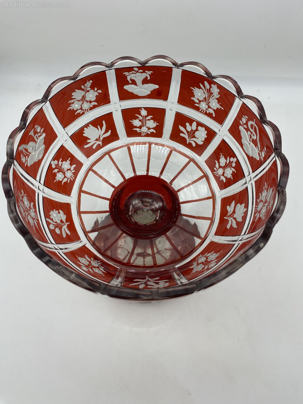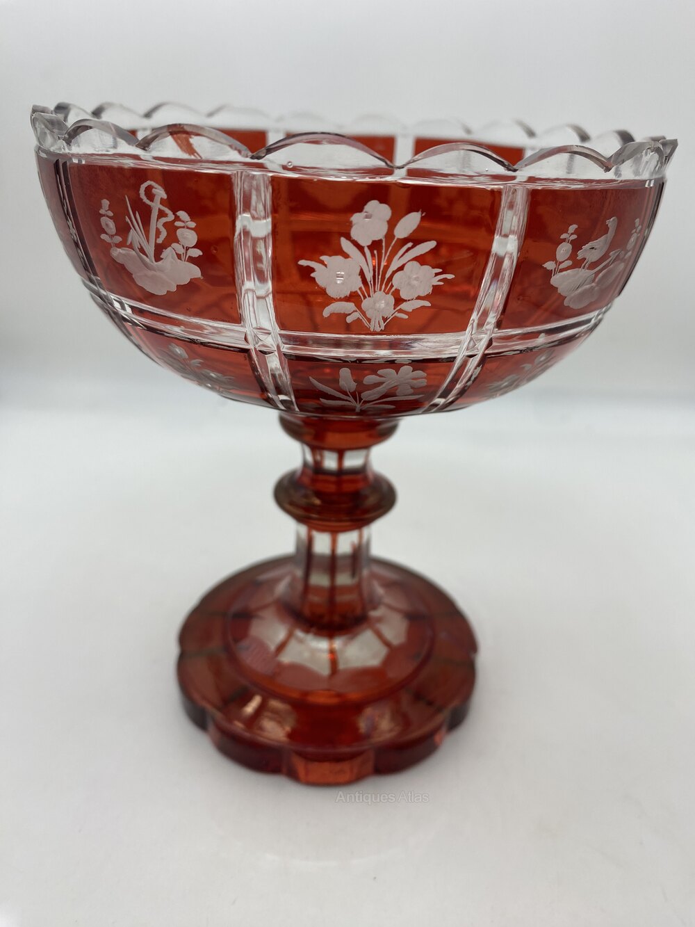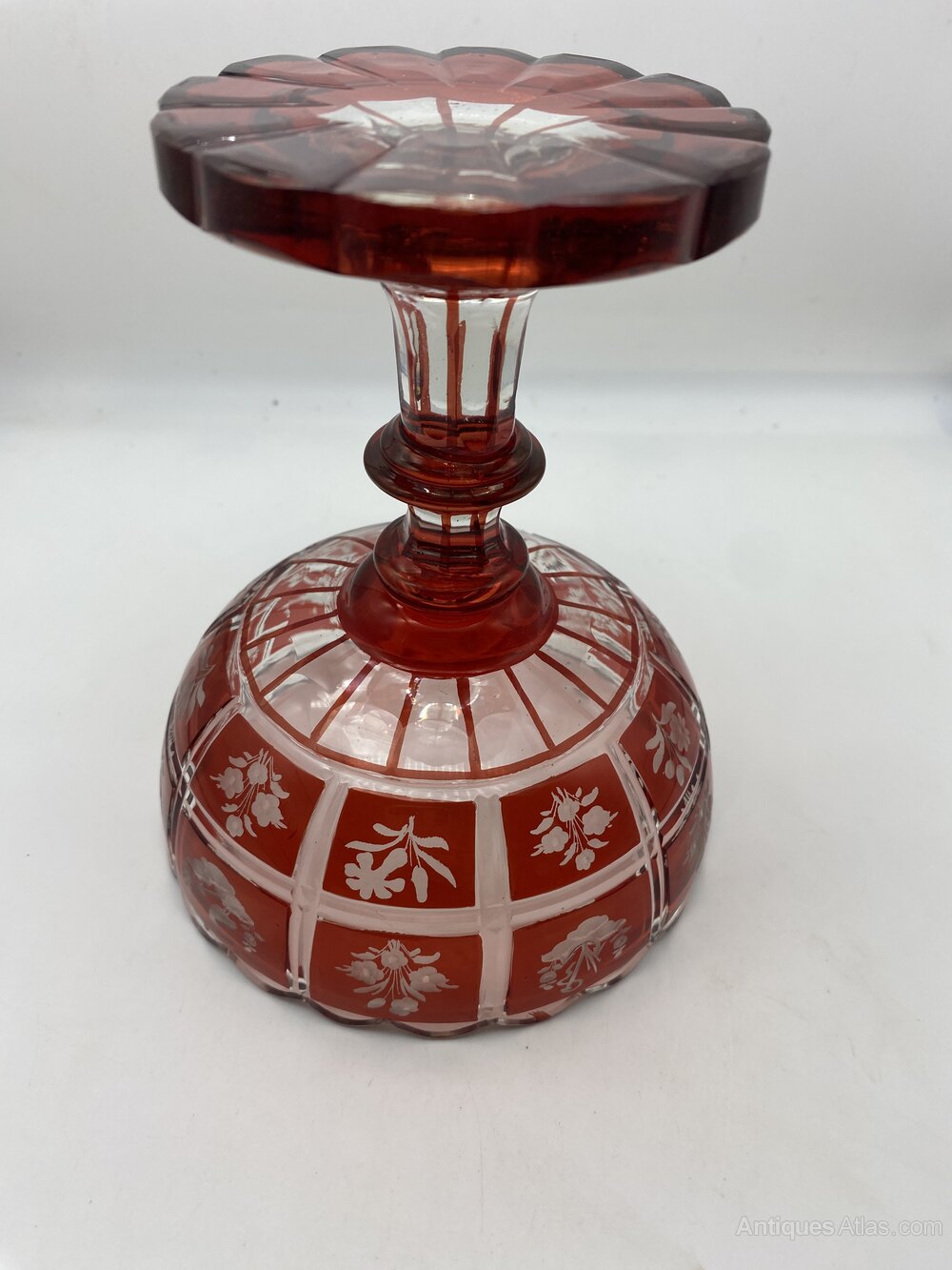 Bohemian Ruby Overlay Glass Pedestal Bowl