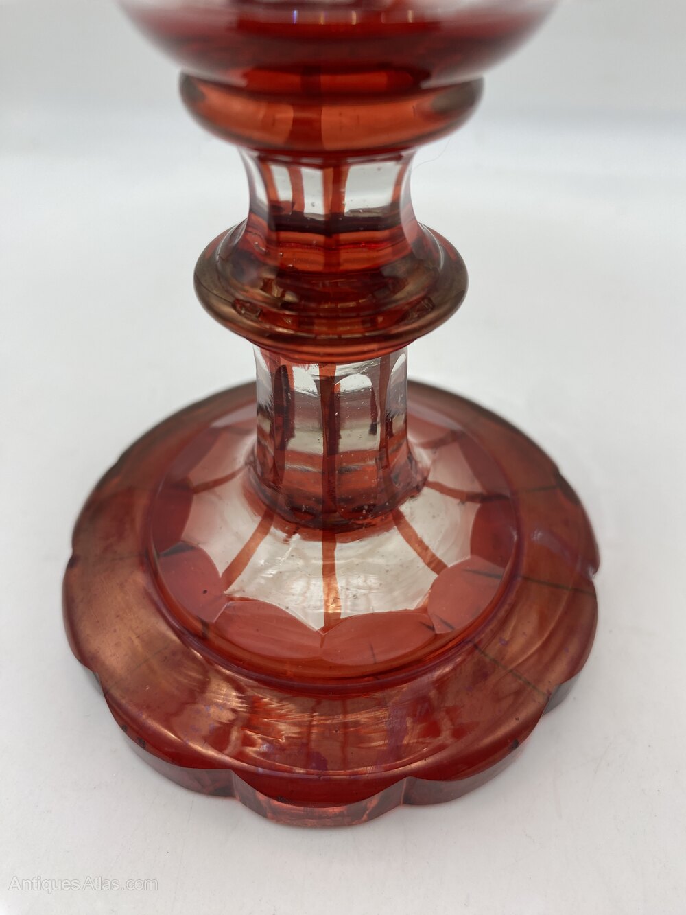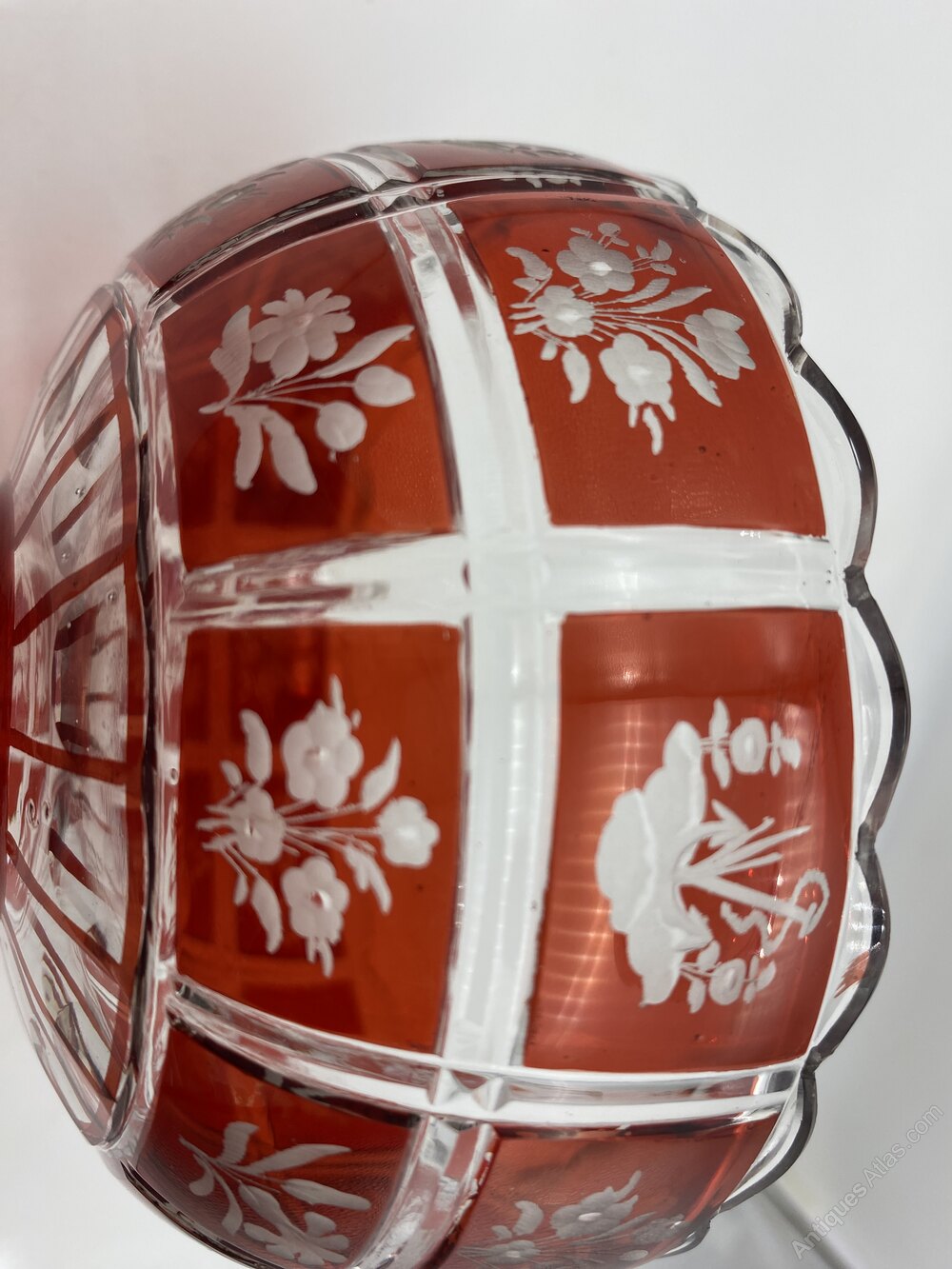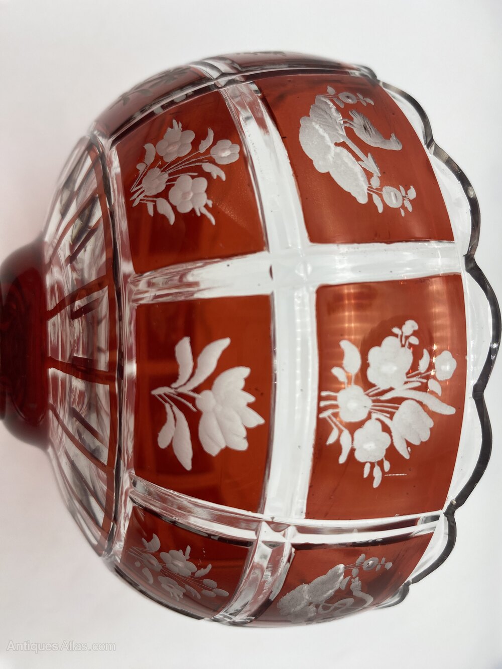 Bohemian Ruby Overlay Glass Pedestal Bowl