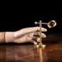 A lacquered brass bullseye condenser desk magnifying glass, c.1910. This instrument would have originally been used to direct light from a candle or lamp on to a specimen for observation, particularly when using a microscope.