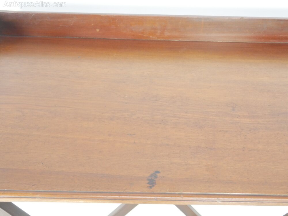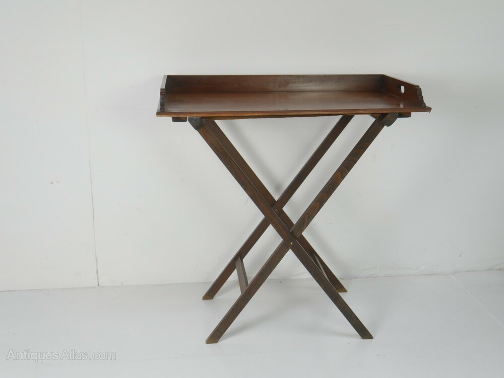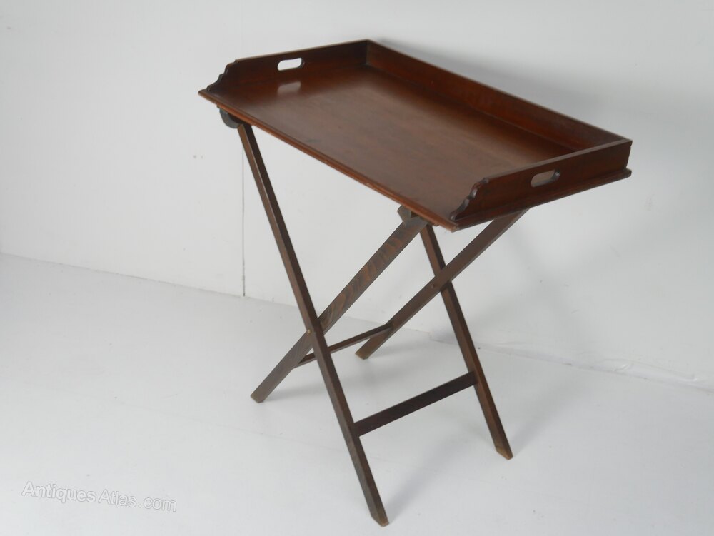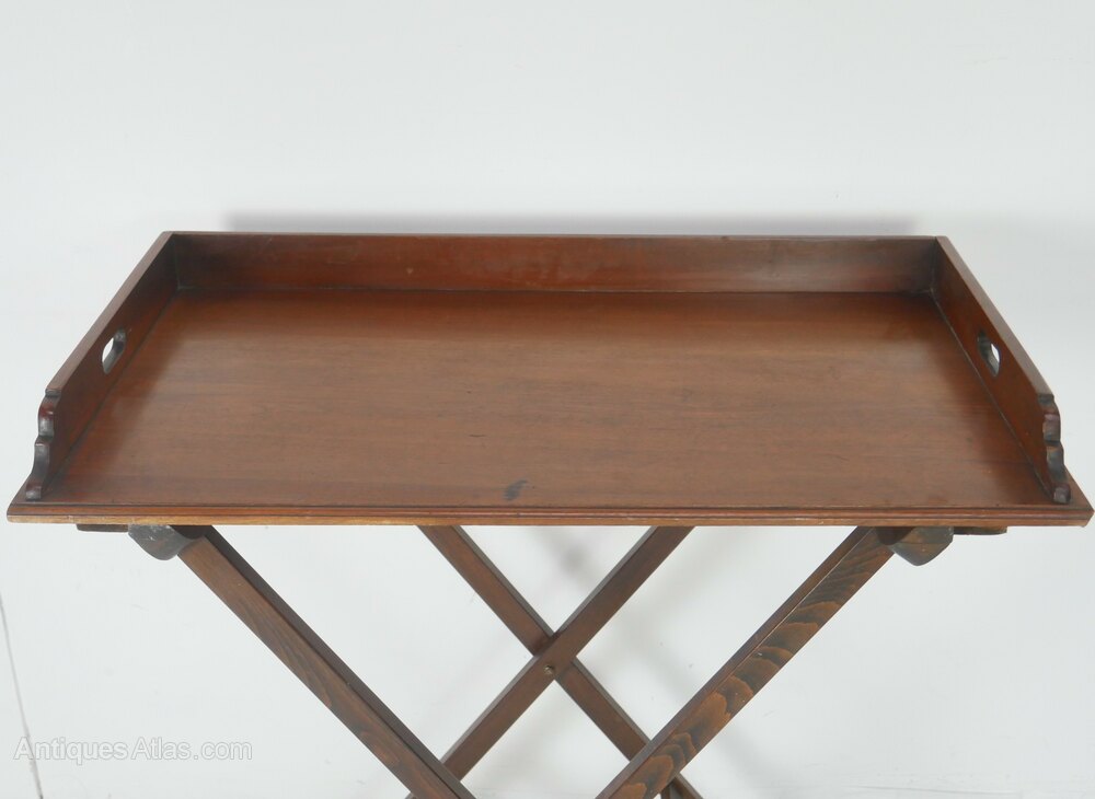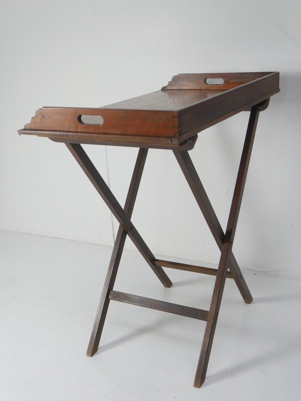 A good quality two piece butlers tray with stand. The lift off tray made in walnut, two carrying handles and neat gallery, a folding beech base. A very well designed table, the tray sits very firmly on the stand, made around 1900 and all in good strong condition and ready for use.