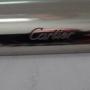 The hefty base seems to be Palladium plated with a fine shiny finish and remaining in superb condition. Both sides are mounted with a cut semi-precious stone which I believe is a coral coloured Jasper. The base is engraved with the iconic signature "Cartier" and the underside impressed "Swiss".