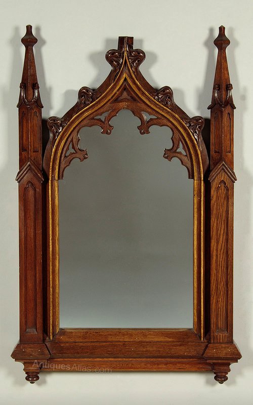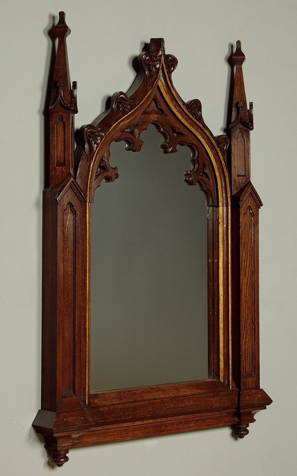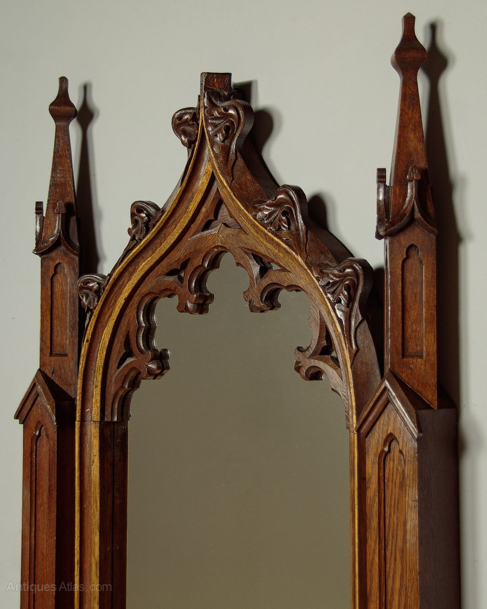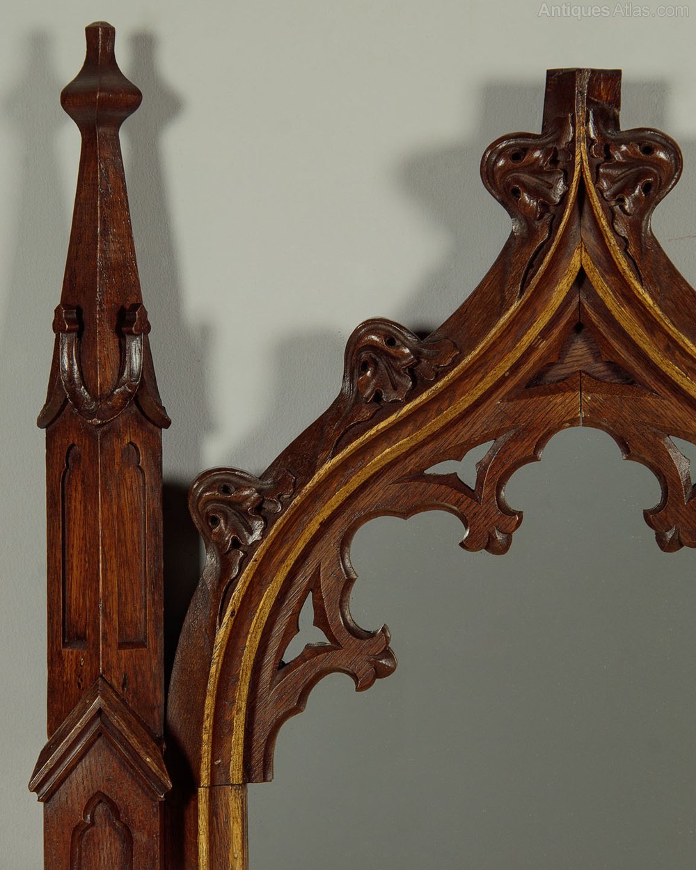 Carved Oak Gothic Revival Wall Mirror c.1900