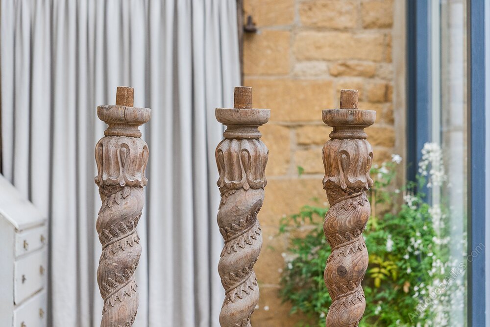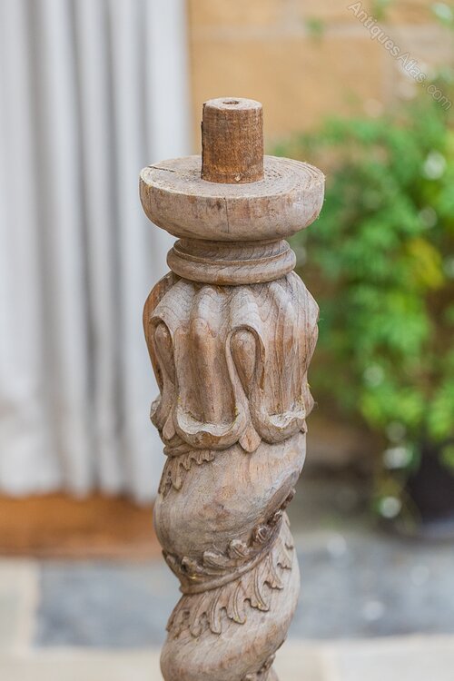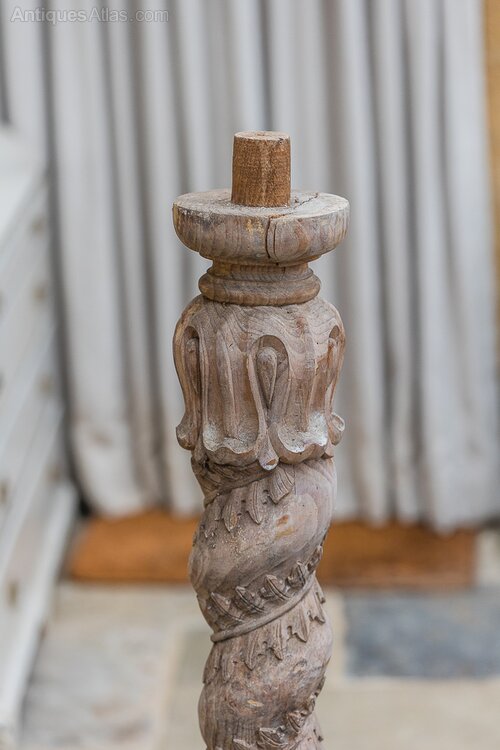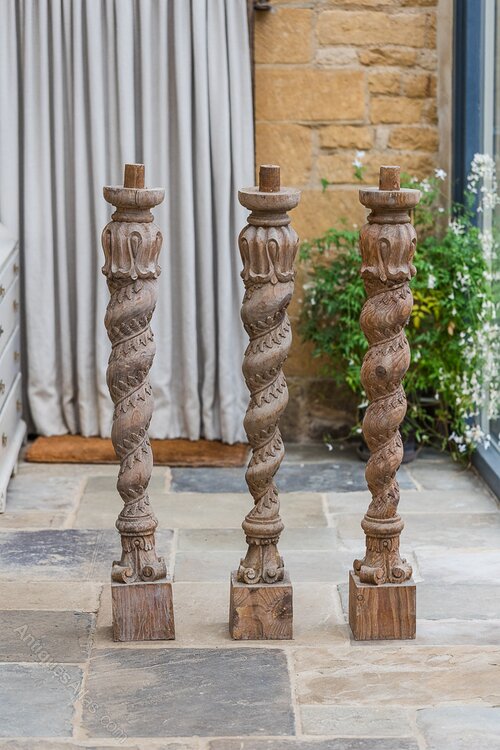 3 x beautifully carved pine posts in original condition - may have been part of a poster bed