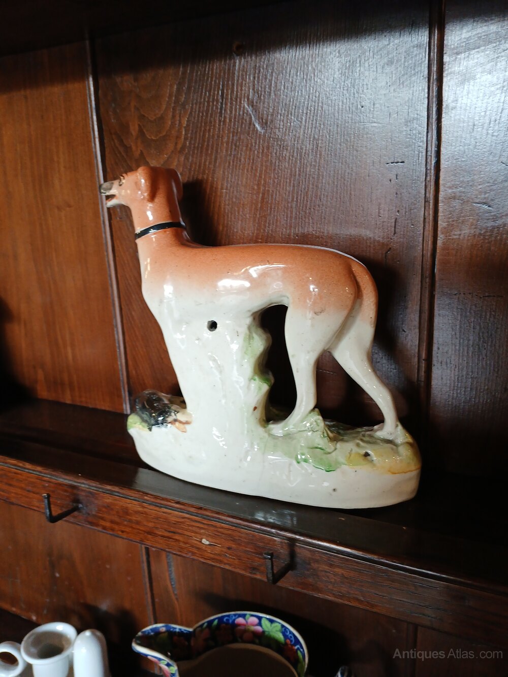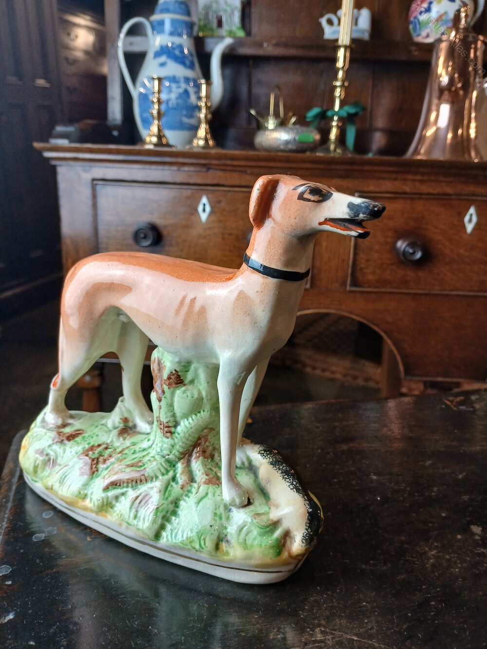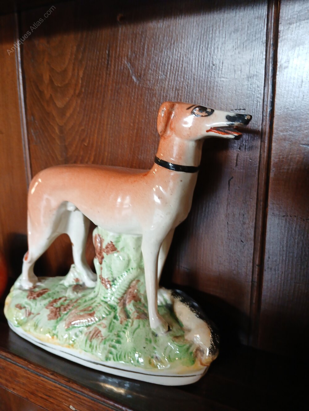 Delightful English 19th Century Staffordshire pottery grey hound.