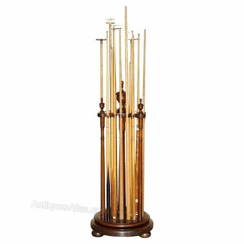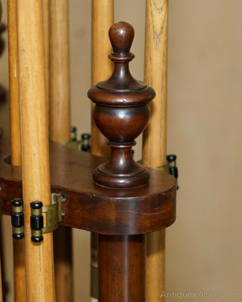 We are delighted to offer for sale this lovely Antique Victorian Circa 1880 Mahogany Revolving Snooker cue stand with 18 cues some stamped Sir William Bentley