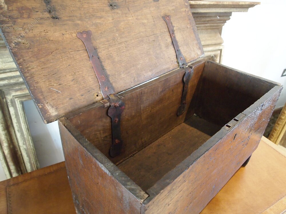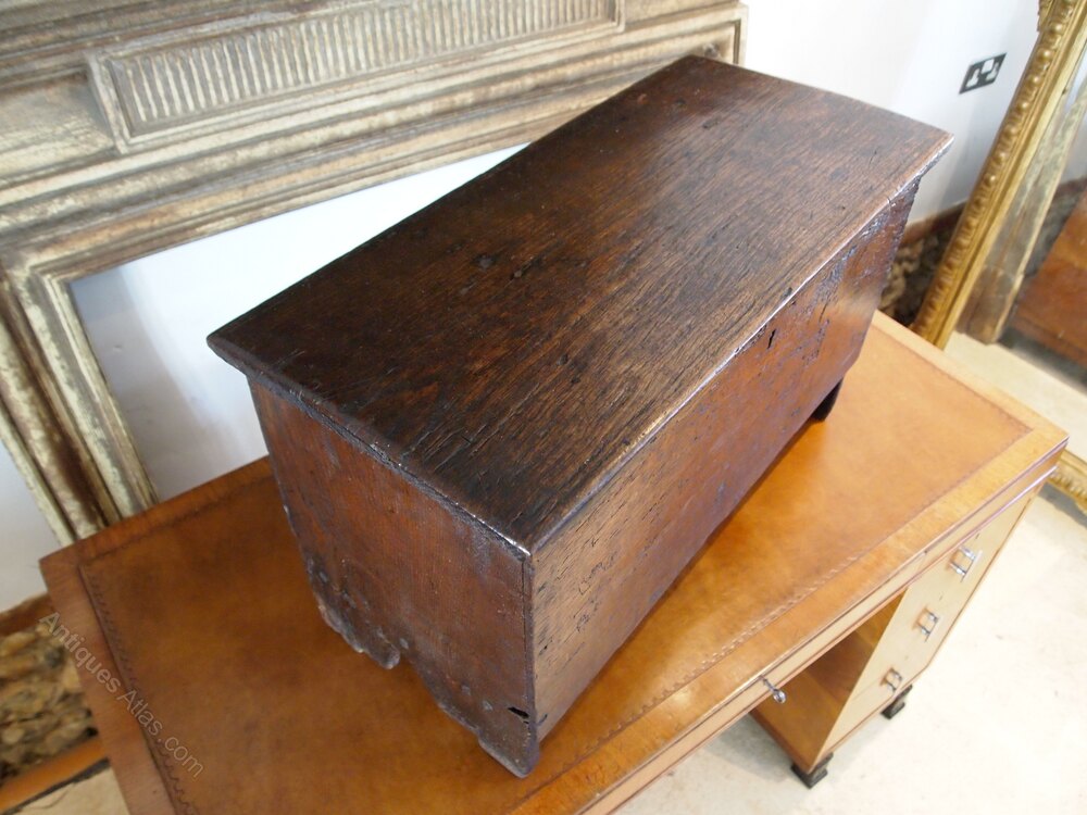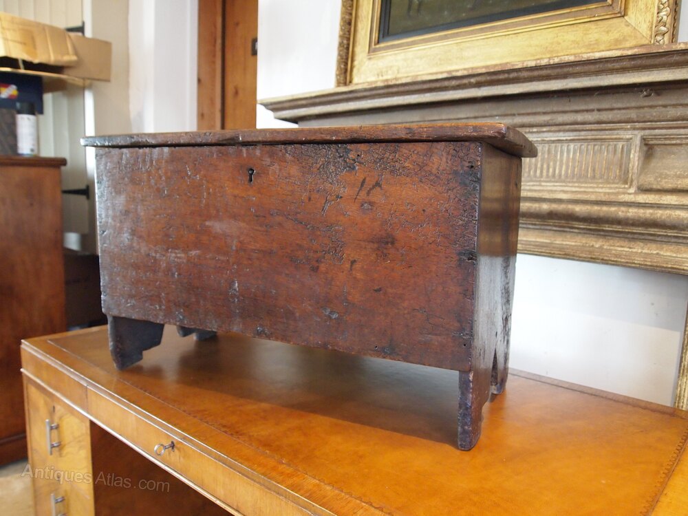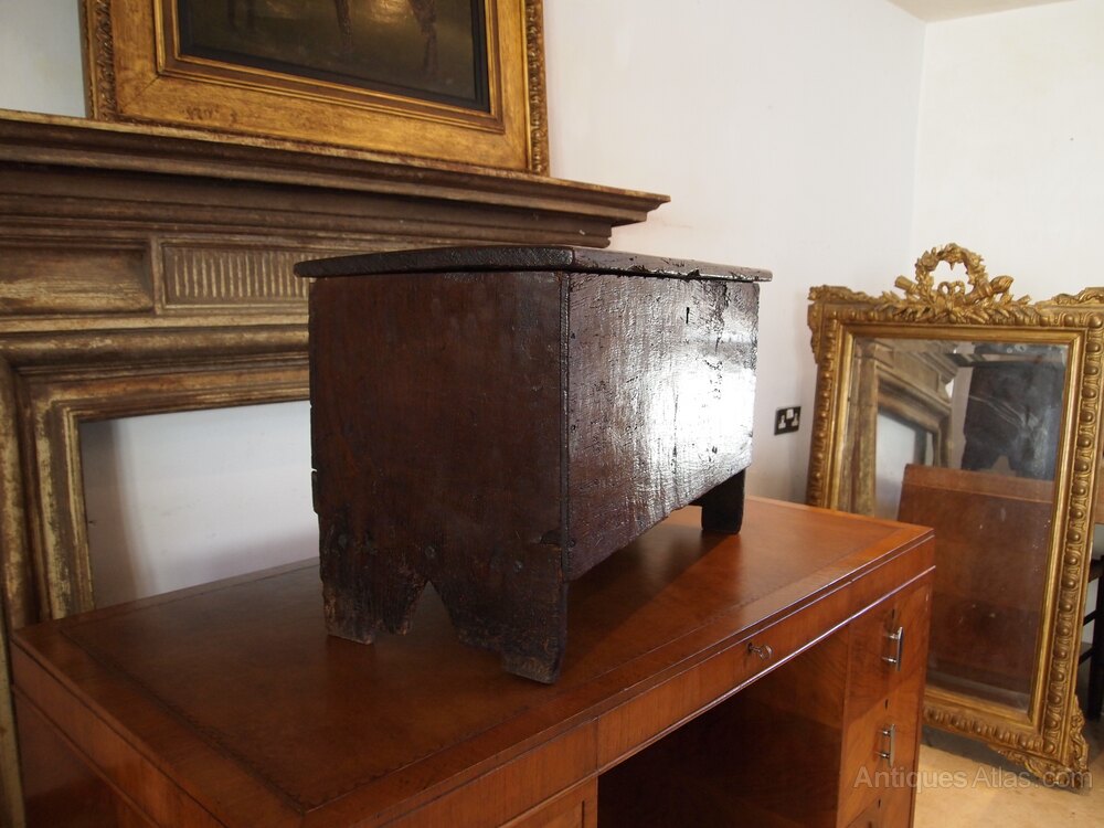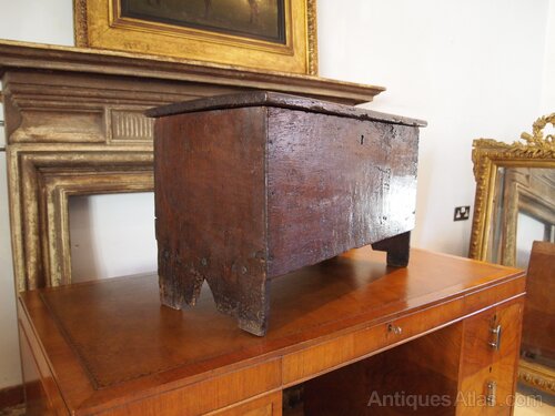 Here we have a very rare small 17th century 6 plank Oak childs coffer c1680. As you can see the coffer has great colour and patina. There is a single thick plank to the top with elaborate strap hinges. There are single planks to the sides, front, back and base all of simple rosehead nail construction. This very rare coffer is in great retail condition and ready for any home or collection. The dimensions are approx 71cm wide 35cm deep 43cm high.