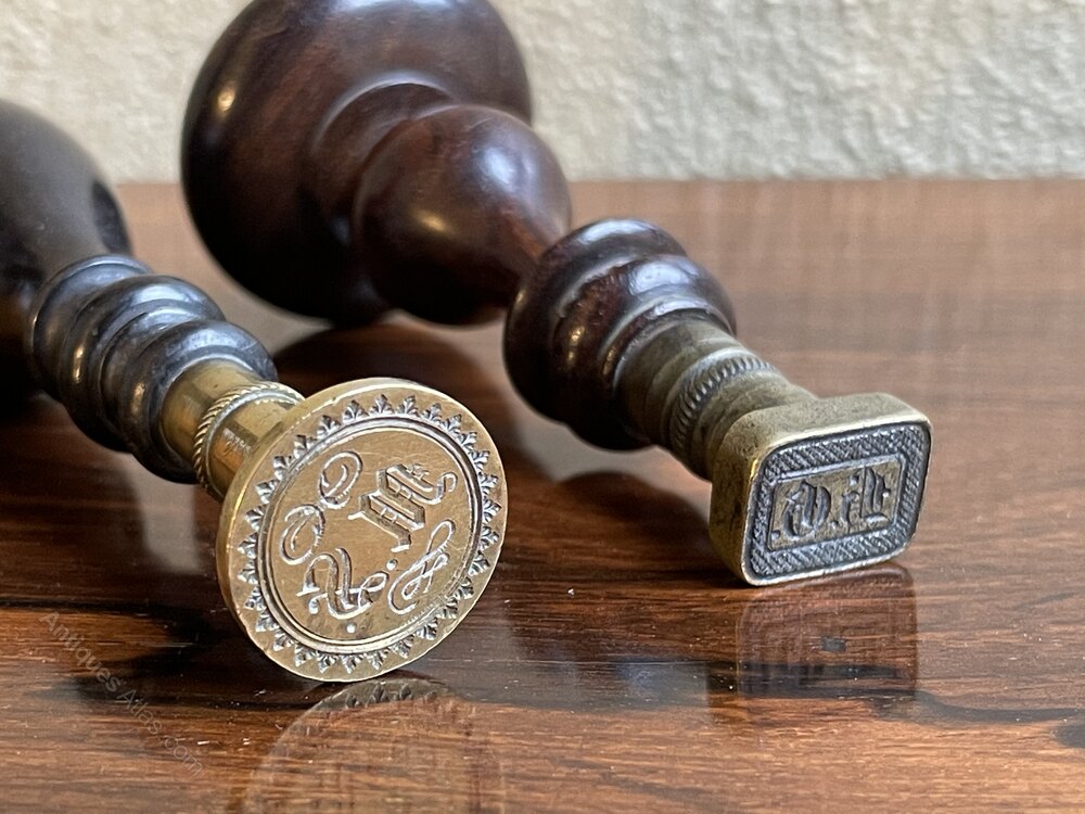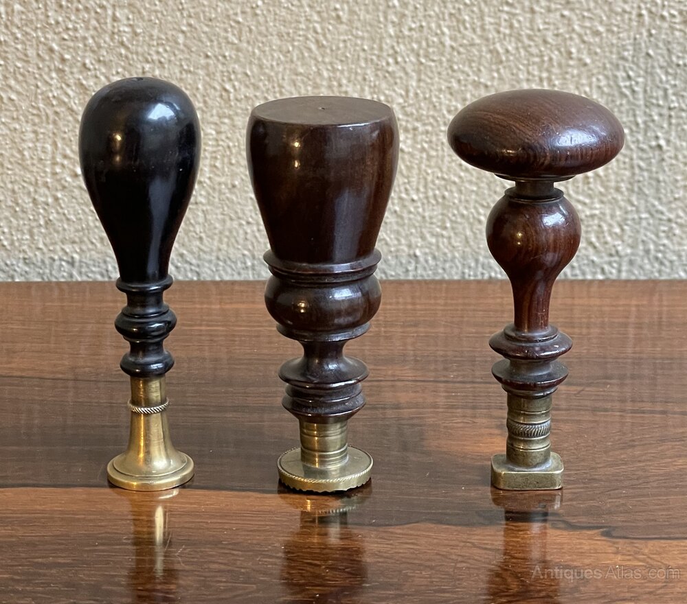 A collection of quality and finely turned rosewood desk wax seals with attractive brass seals circa 1810-1820.