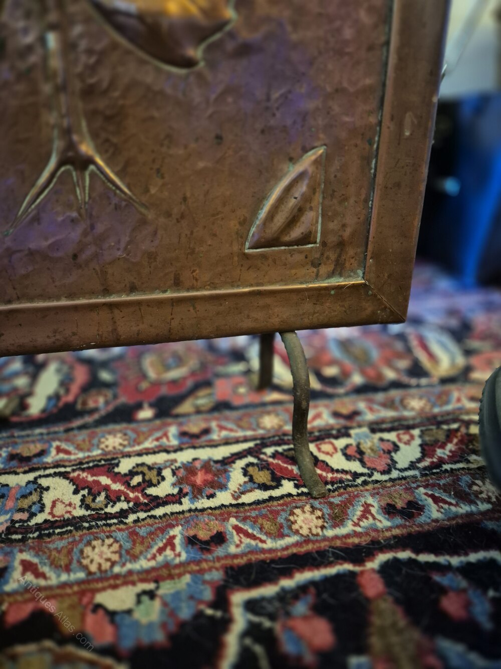 Antique Hammered Copper Arts & Crafts sstyalised Grape & Vine Leaf Fire screen, feet easily removed to create a good decorative panel.