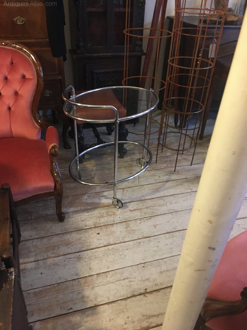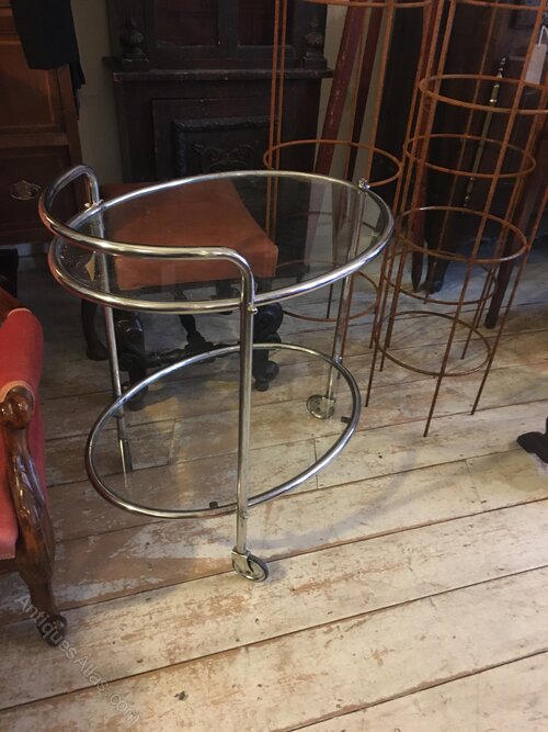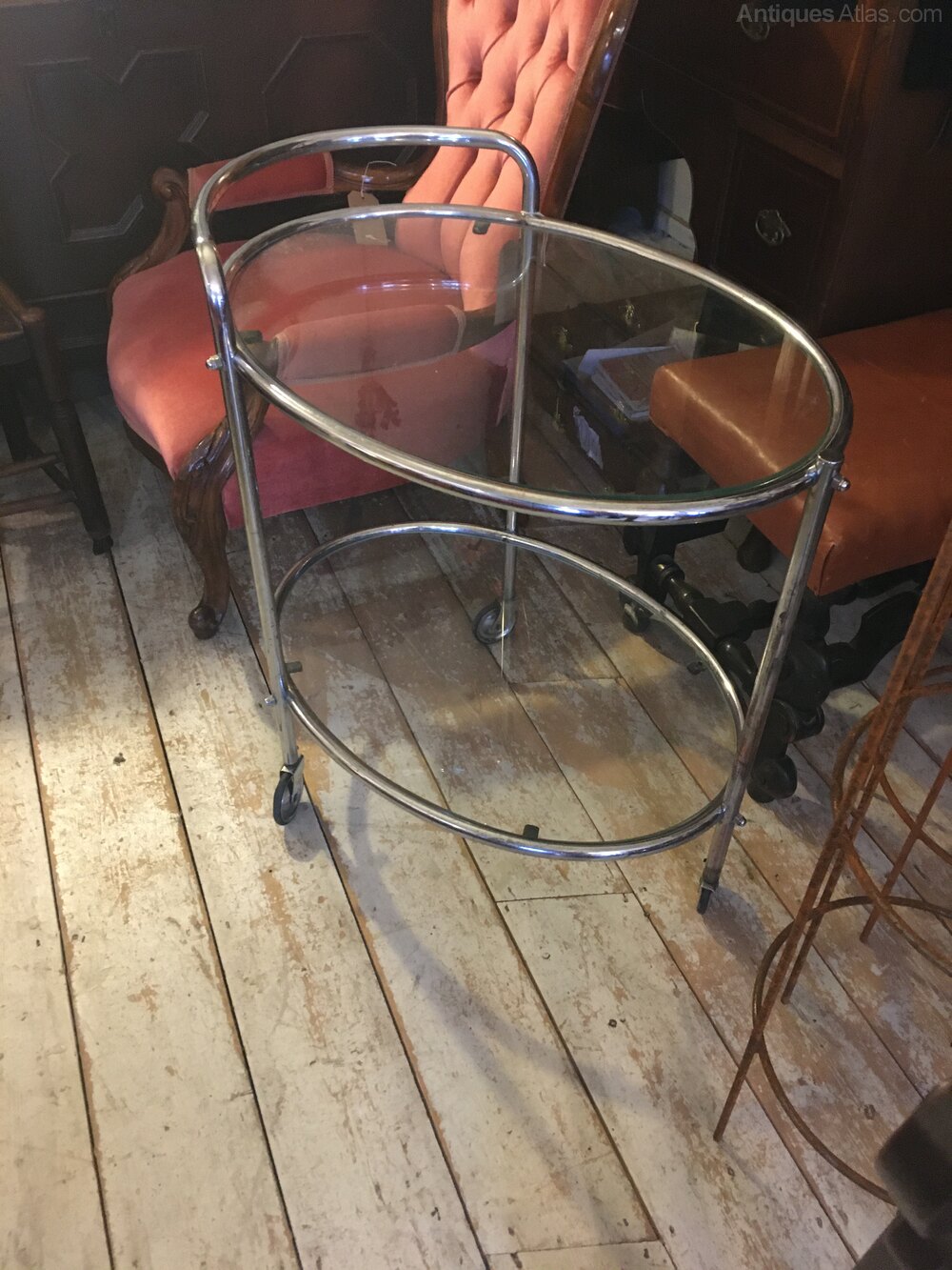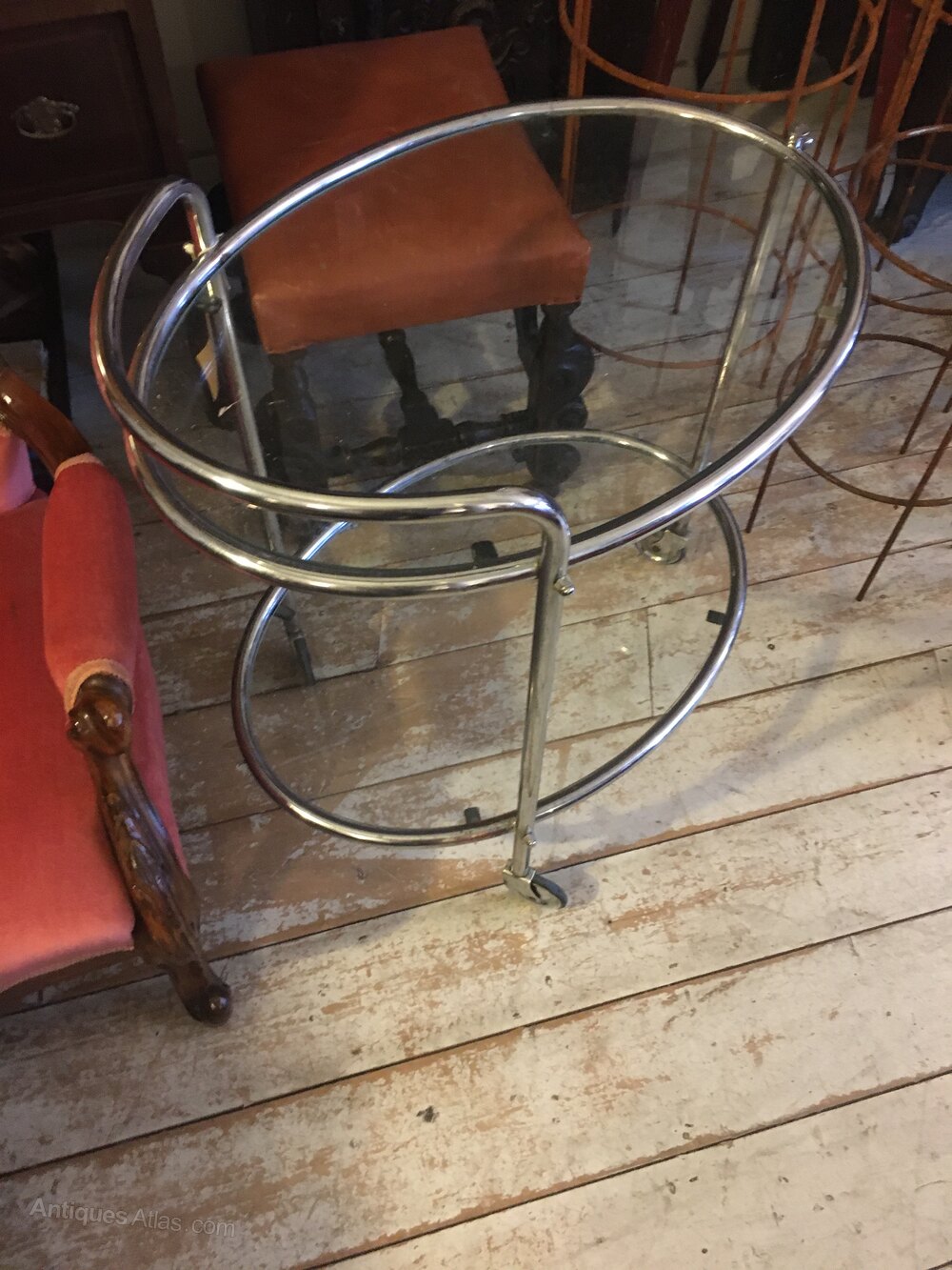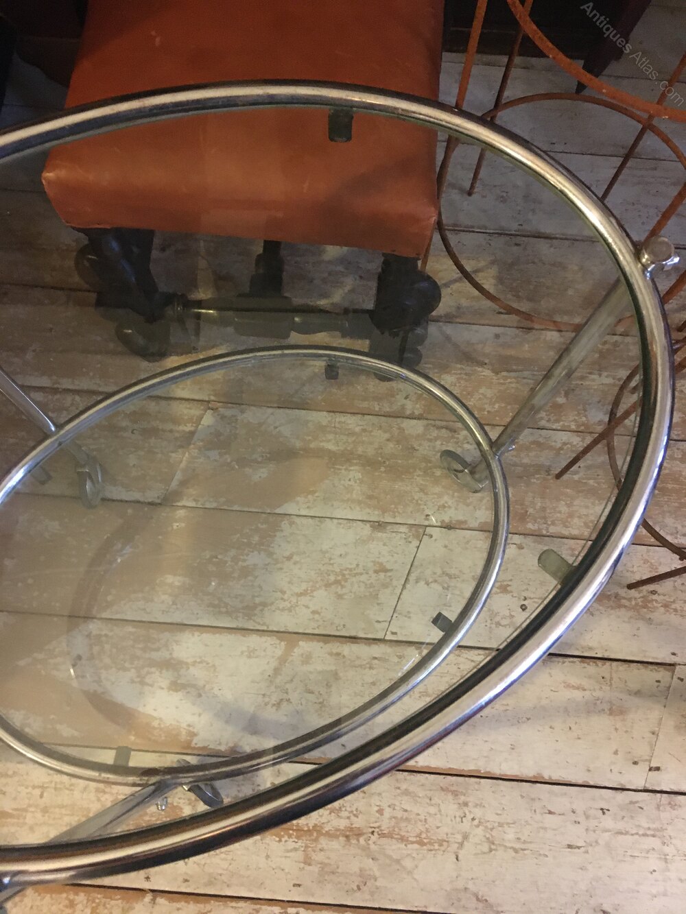 Classic art deco Crome tea trolley. I would think this from the 60 on wheels two tier trolly glass is perfect Crome is not bubbling. Nice trolley