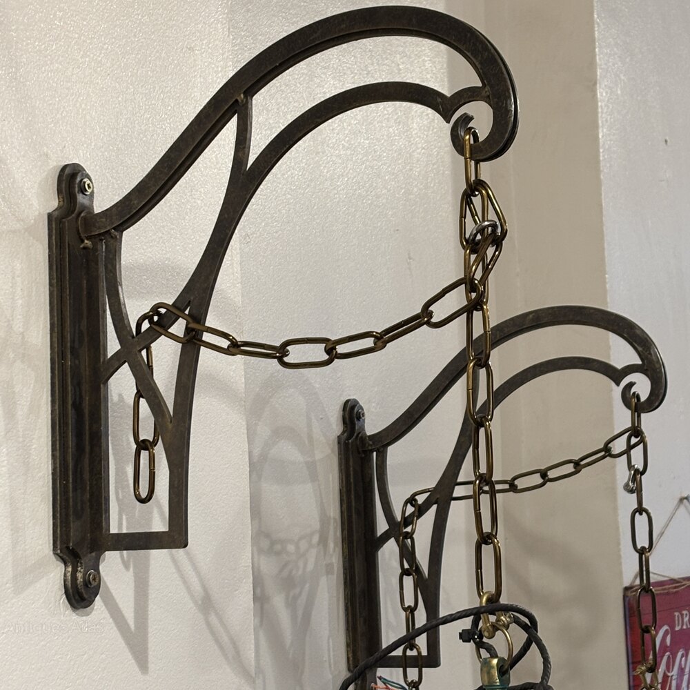 Suspended from elegant curved wall brackets with chain supports, these would ideal for use in hallways, retail displays, or as statement lighting in interiors.