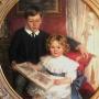 This fine example of Edwardian portraiture was almost certainly a commission and probably painted during Dixon’s time in Edinburgh. Here we see the young Constance sitting on a chair and holding open a book while her older brother looks over towards the coloured plates displayed within it.