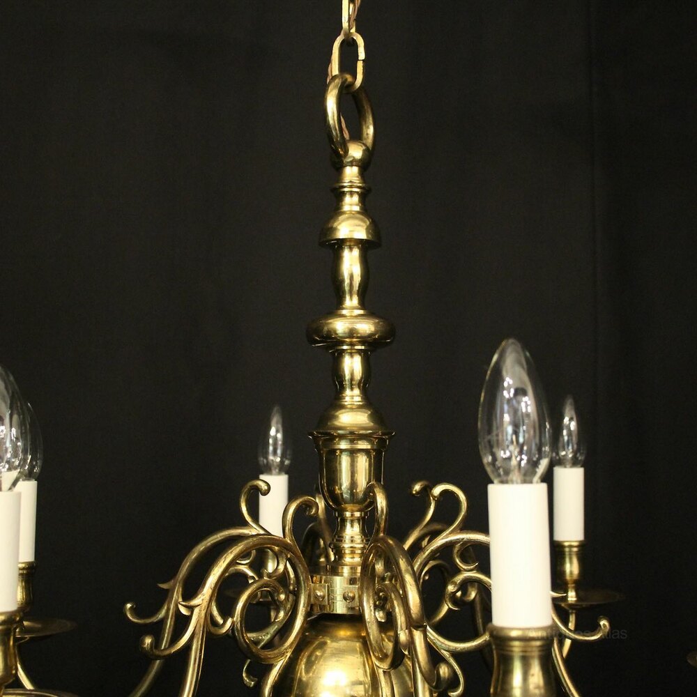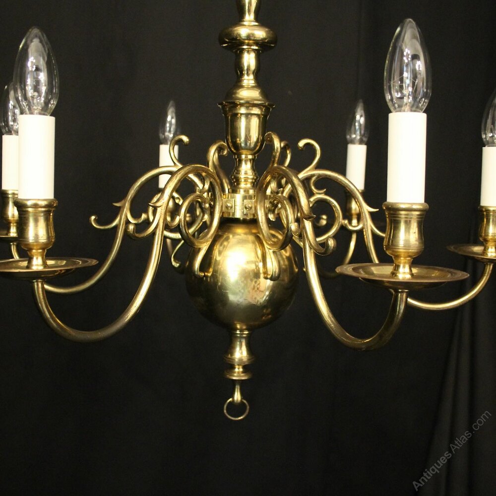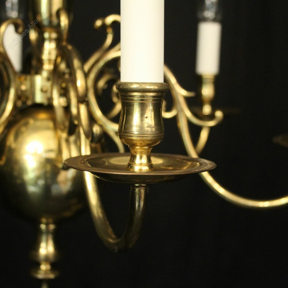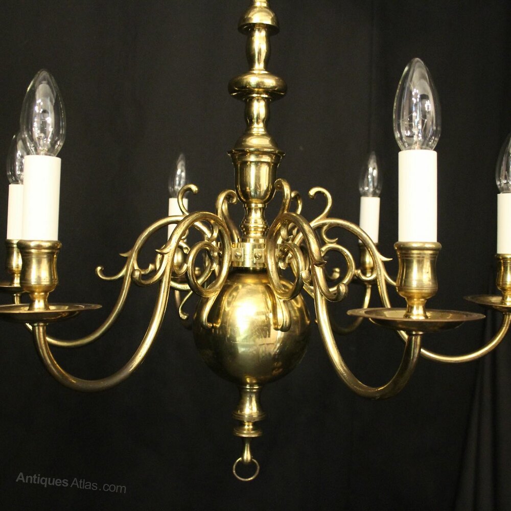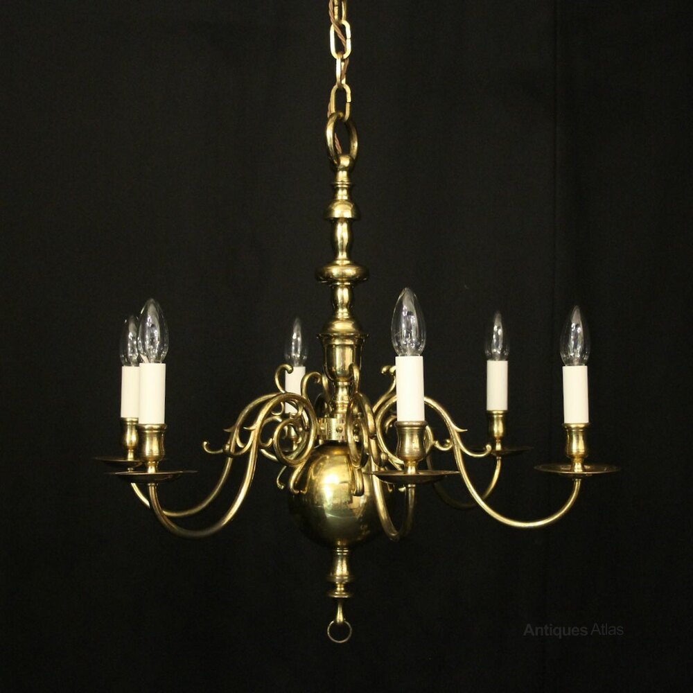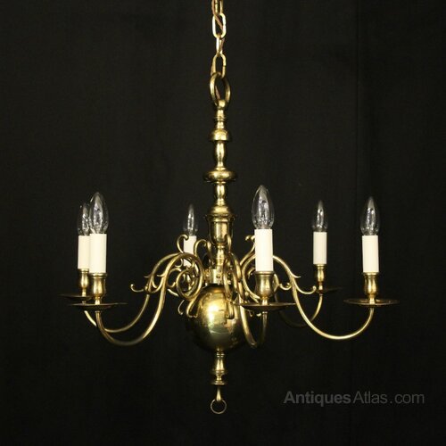 Large Cast Brass Dutch Style Six Arm Light Fitting