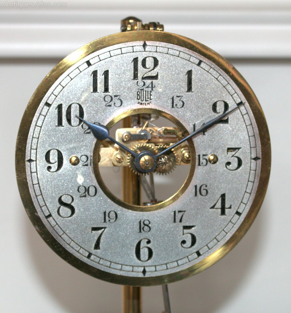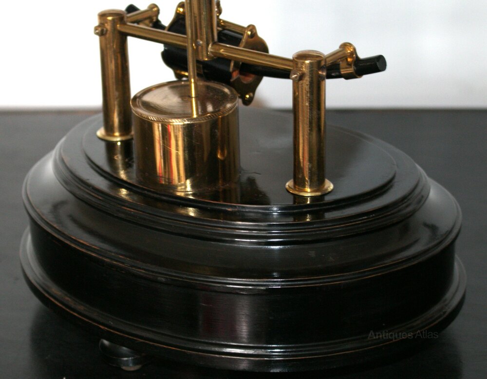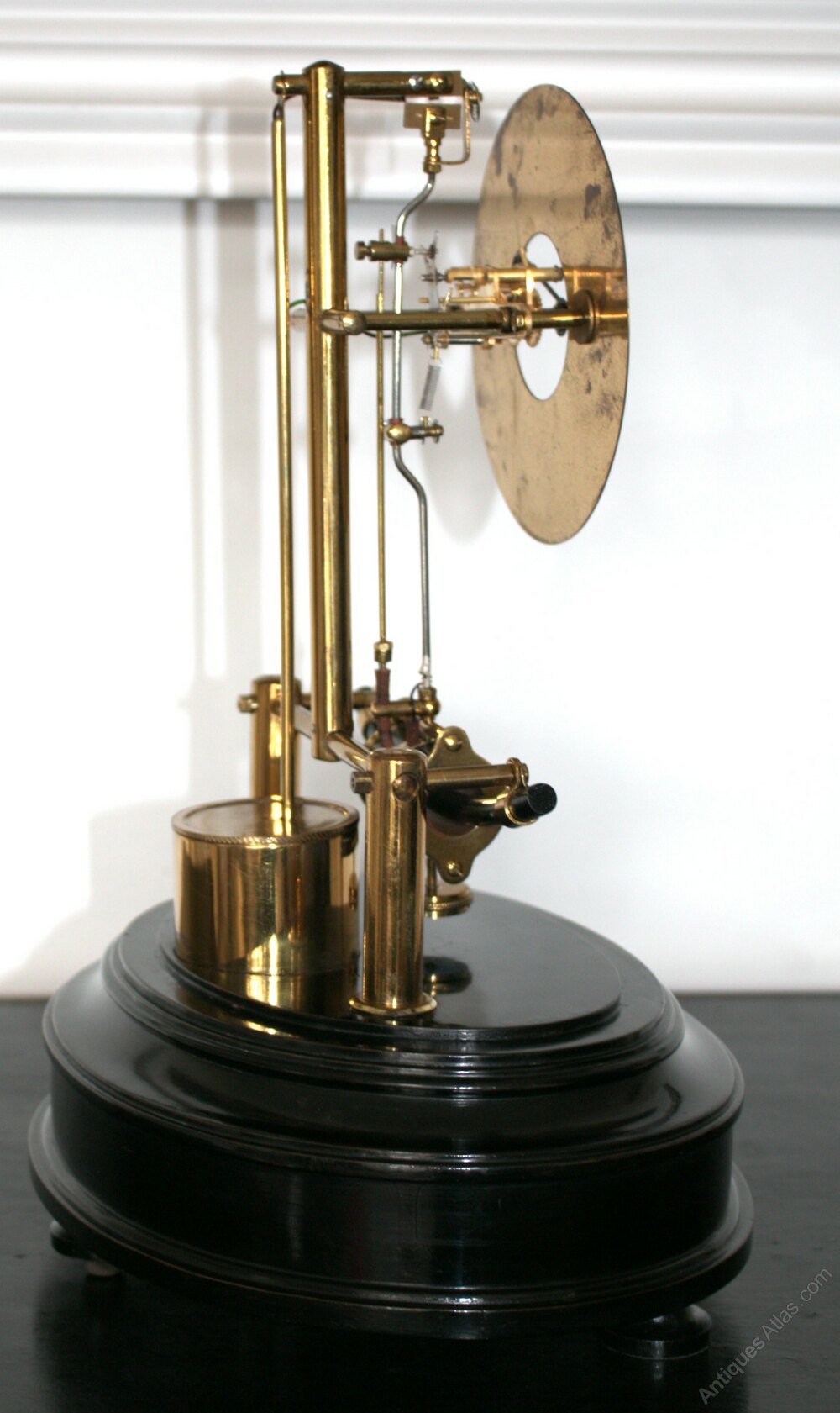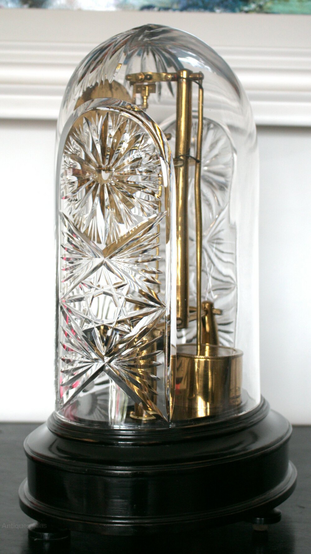 Hand Engraved Glass art Deco Pattern With Striaght Symetrical Design Very Thick Glass On A Eboinised Mahogany Base With Adjustable Feet Circular Brass Dial Beaded Edge With Silver Chaper Clear Bold Numerals Original Blued Spaded Hands Solid Brass Movement Stripped Cleaned New Contacts Coiled Cheaked Bar Re-magnatised All Been lacqured