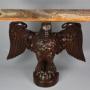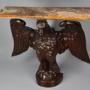 This highly decorative eagle table consists of a finely figured and shaped moulded onyx top, not original, this being supported by a separate metal frame which can be attached to a wall.