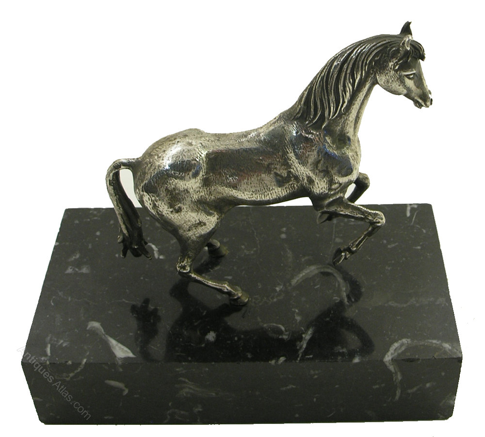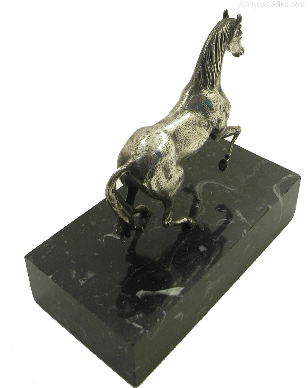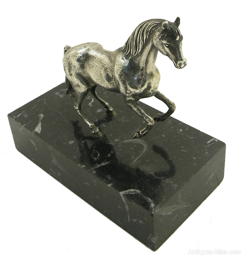 FINE Edwardian period solid cast silver model of a horse on black marble base. The horse is superbly modeled with great crisp detail. Probably the original base.