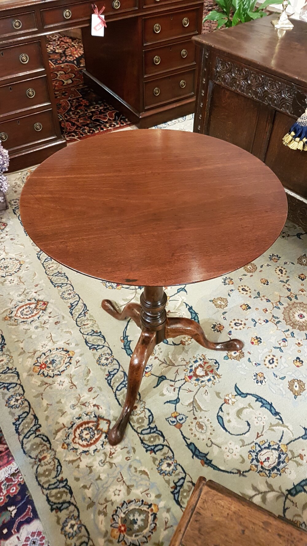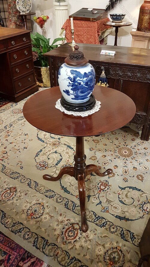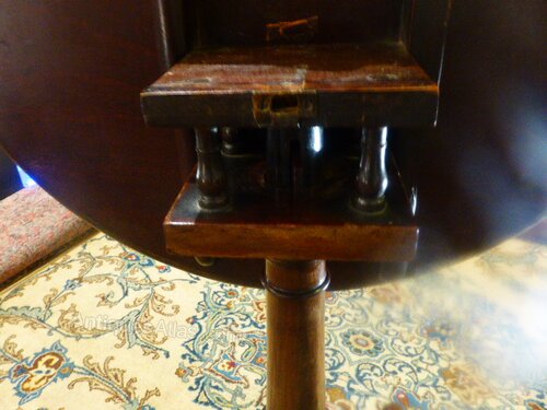 Beautiful single piece of timber used on the top with early feature of the edge being "under-moulded". Nice shape tripod base with turned column and original birdcage mechanism which allows the top to be turned.