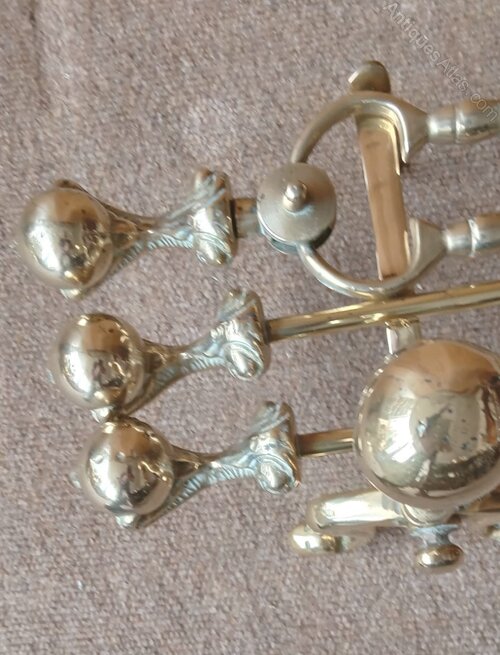Antique Victorian Quality Brass Set of 3 Fire Irons