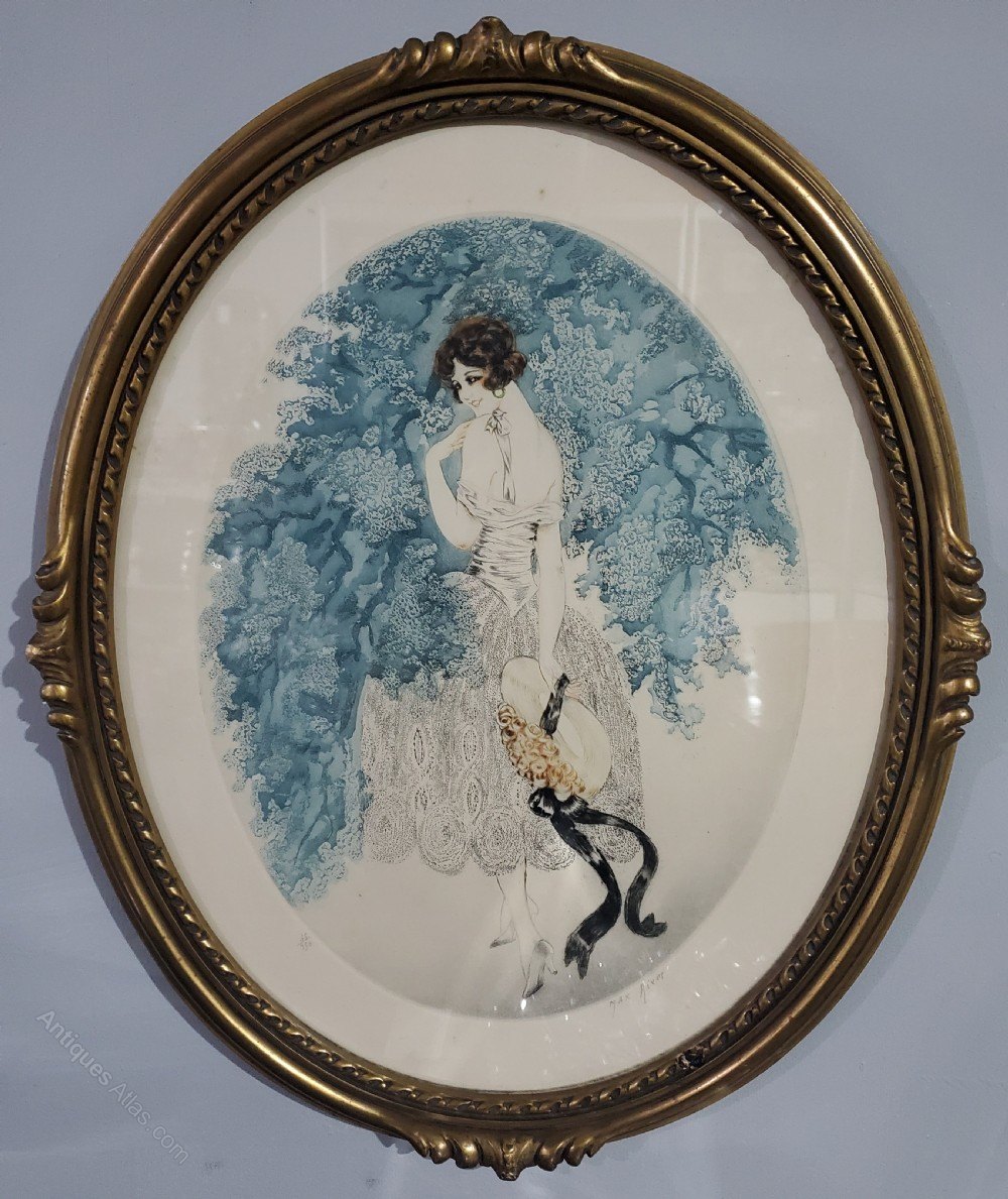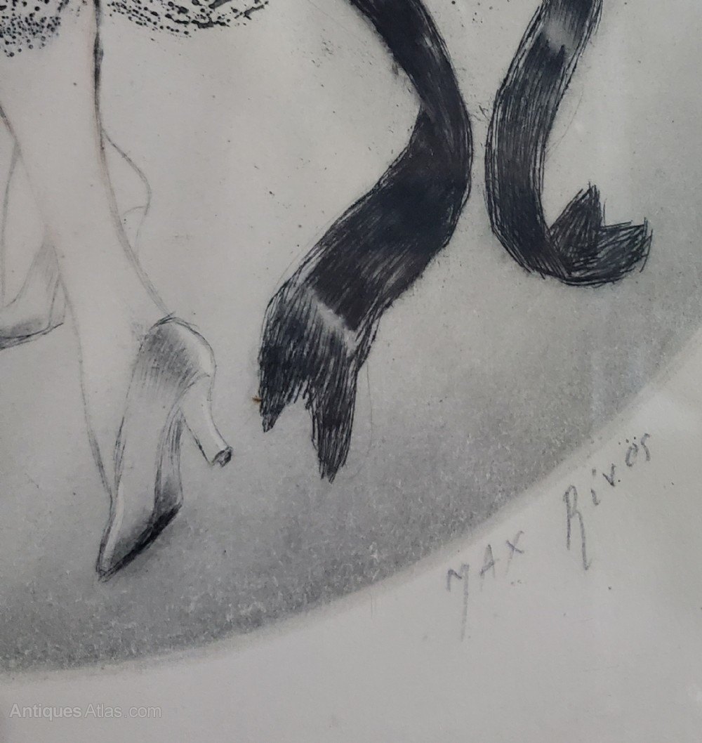 Max Rives, French art deco aquatint engraving of young girl with bonnet c1920s.