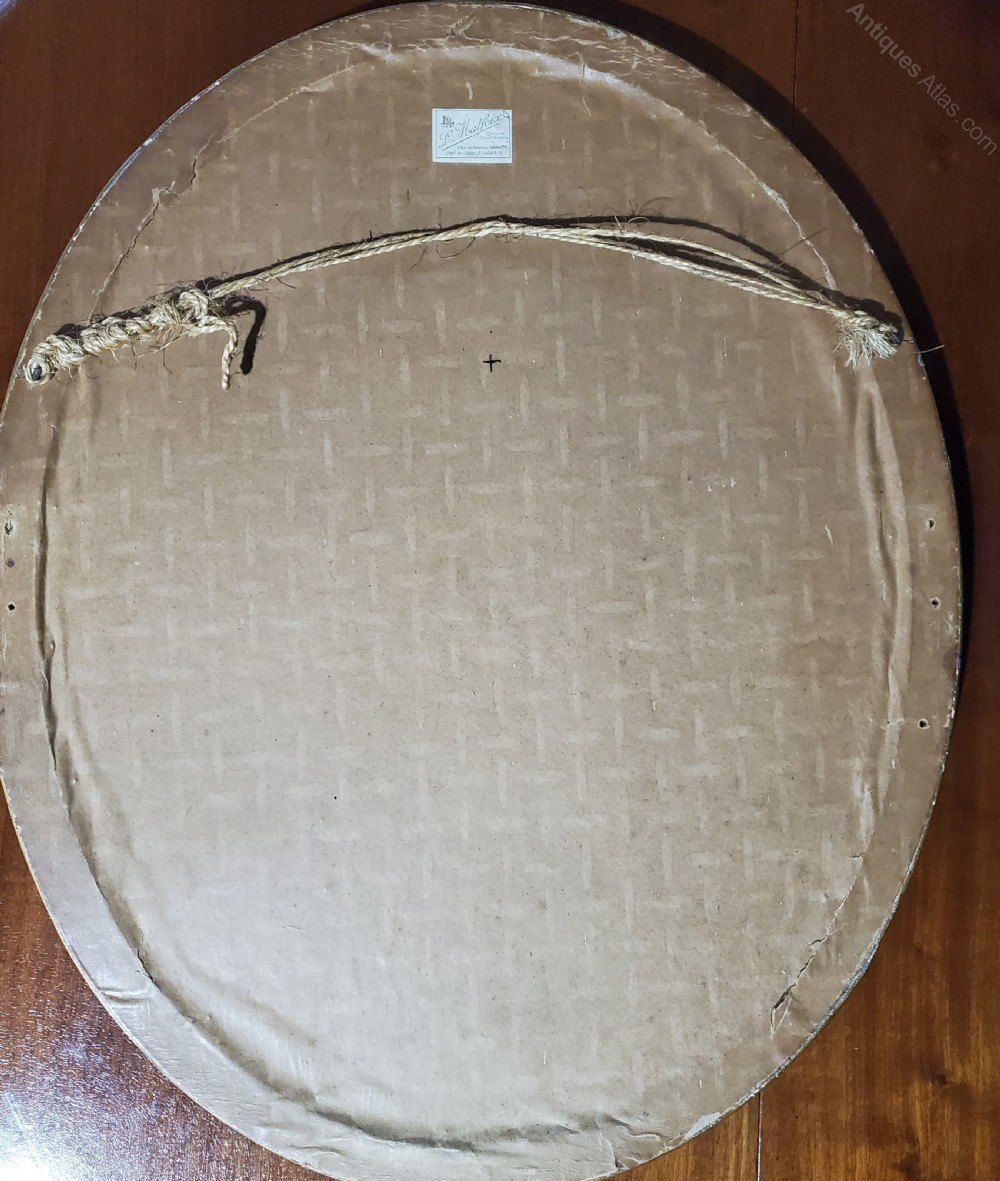 Framed behind glass in gold gilt oval frame. Ready to hang.