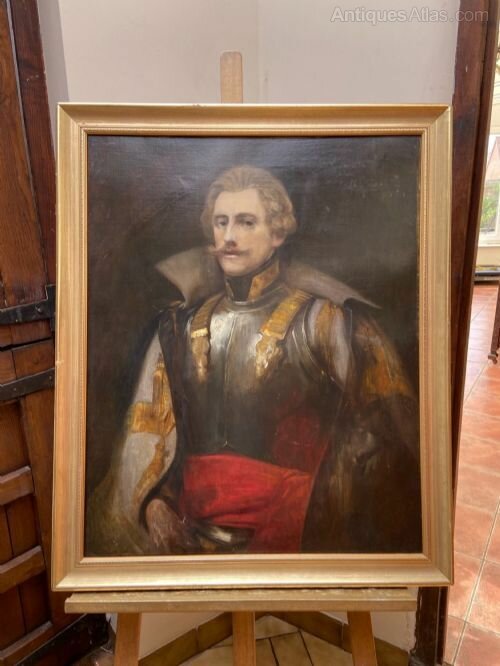 Large Late 18th (1790-1800) Oil Portrait On Canvas Of Cuirassier wearing his armoured breast plate.