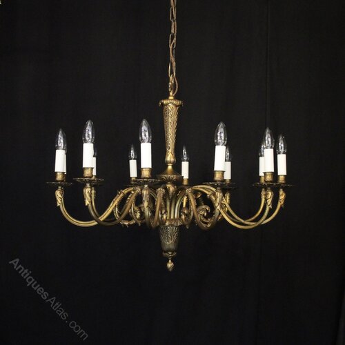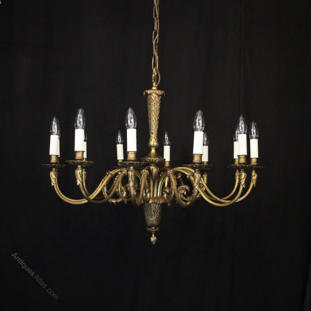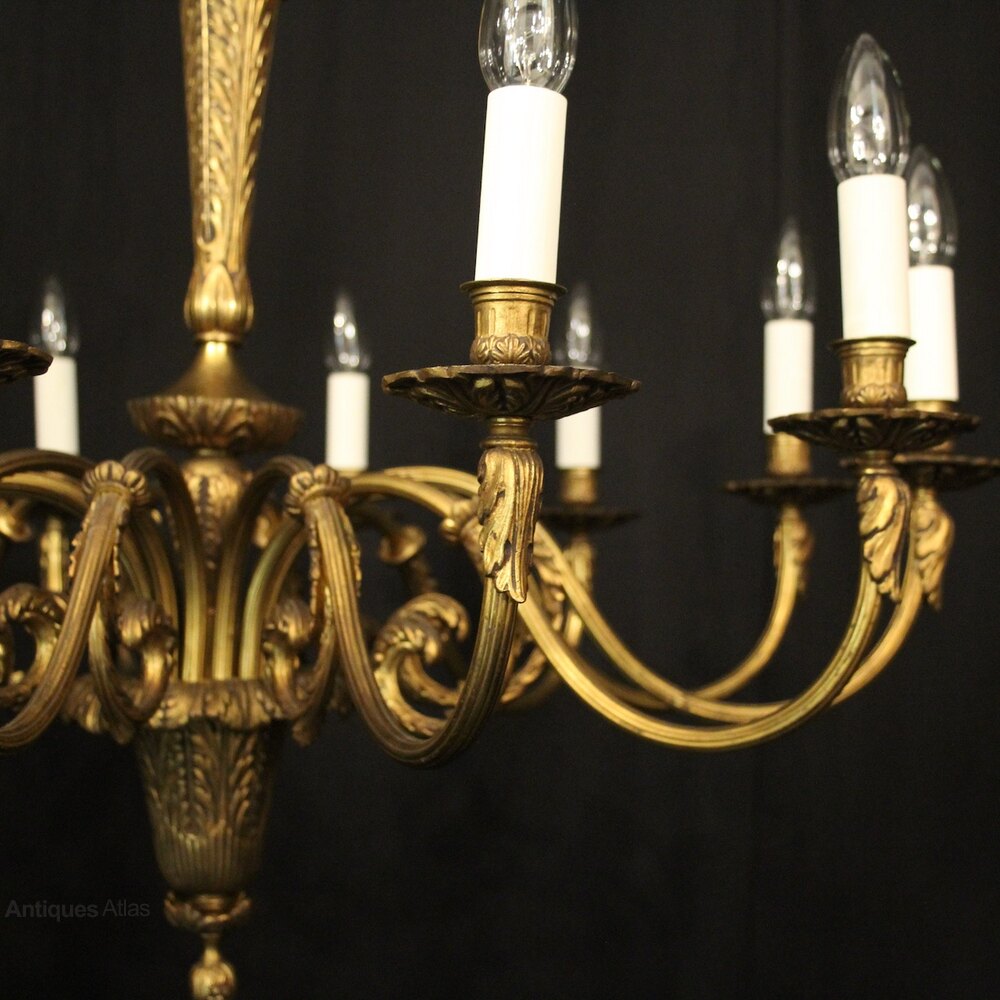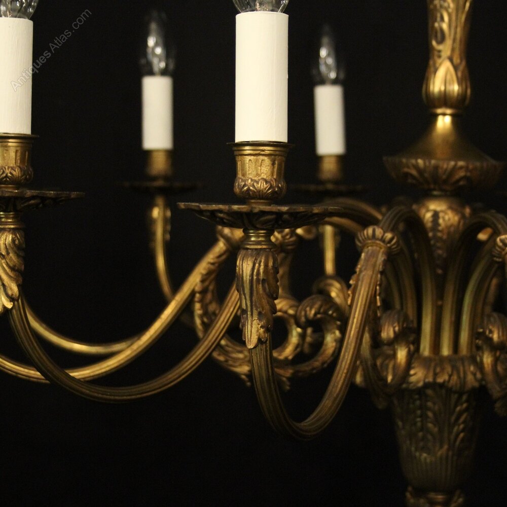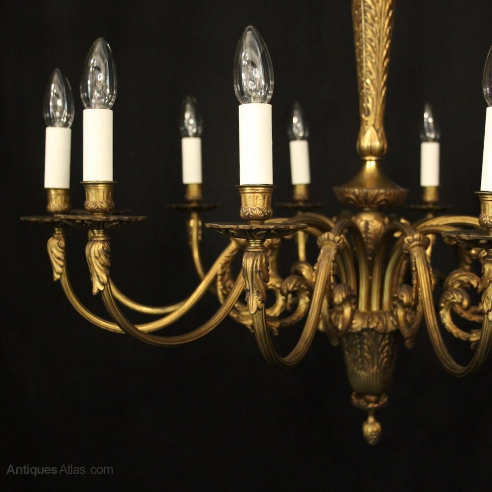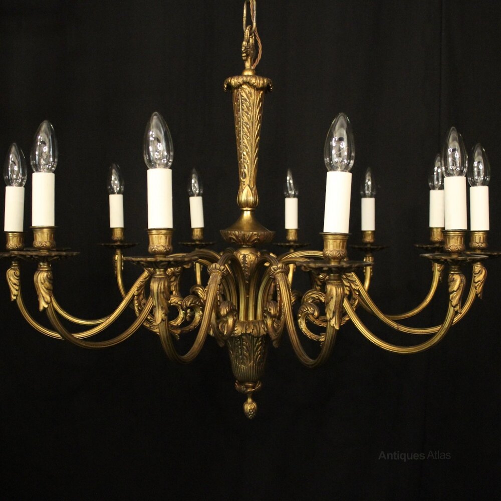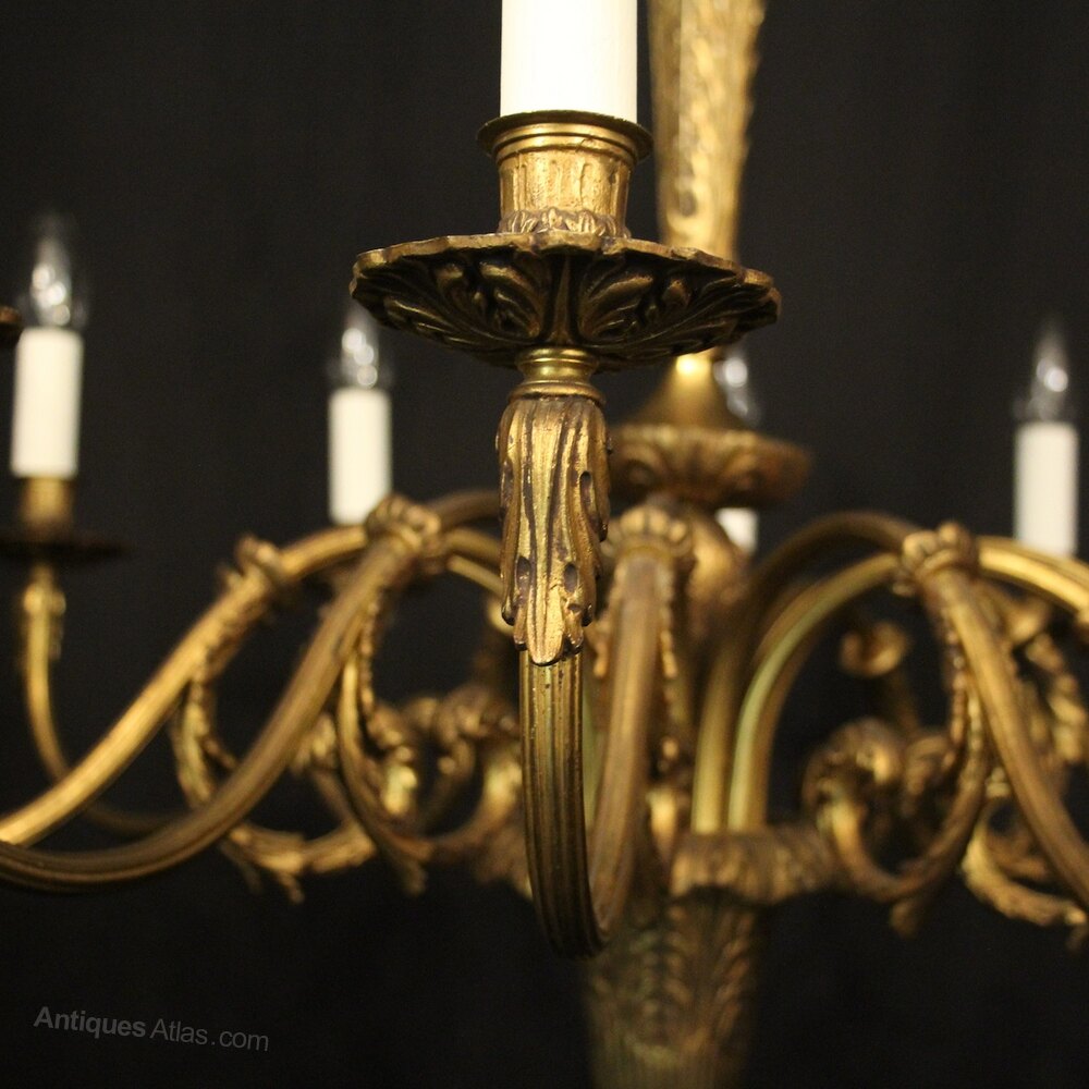 French Gilded Bronze 12 Light Antique Chandelier