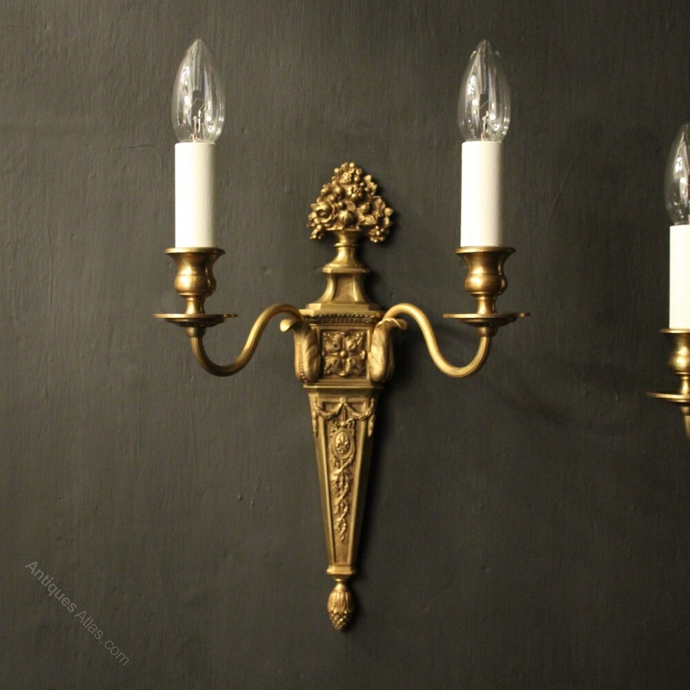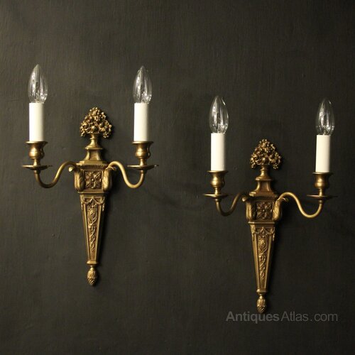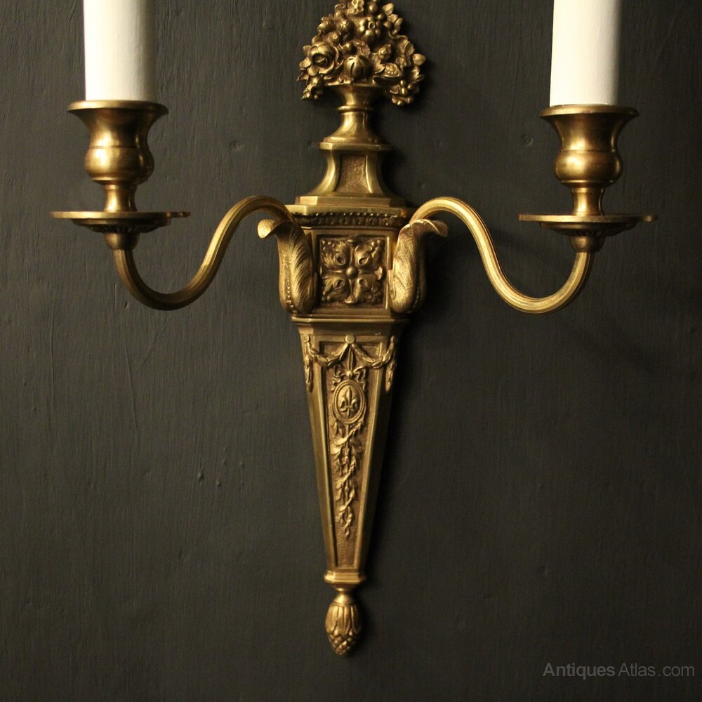 French Pair Of Gilded Bronze Antique Wall Lights