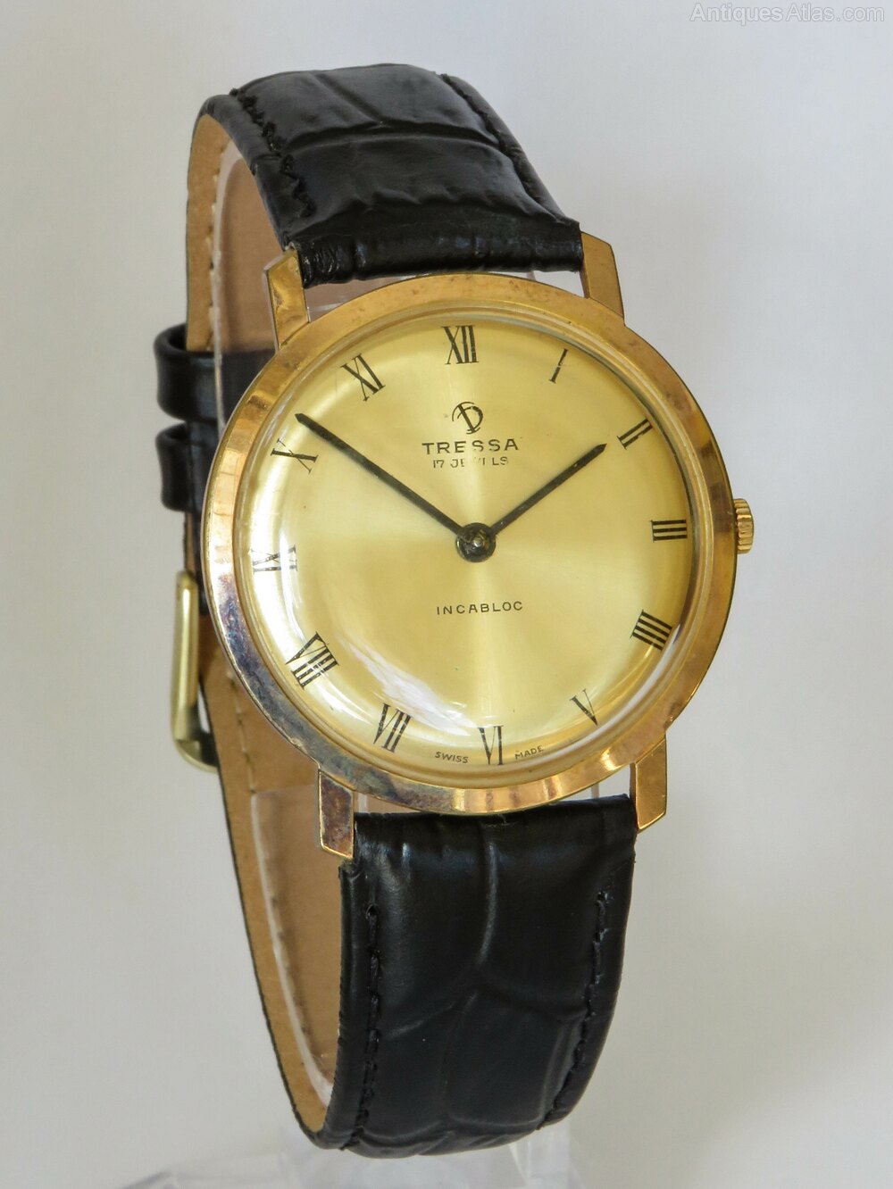 The dial is signed Tressa, a name registered by Tressa Lux Catena SA of La Chaux-de-Fonds, Neuveville and Biel, Switzerland, they used the brand name between 1966 and 1987. Original hands.