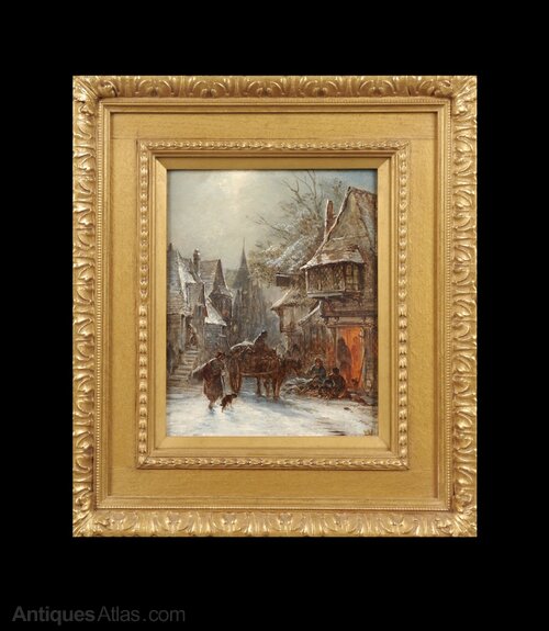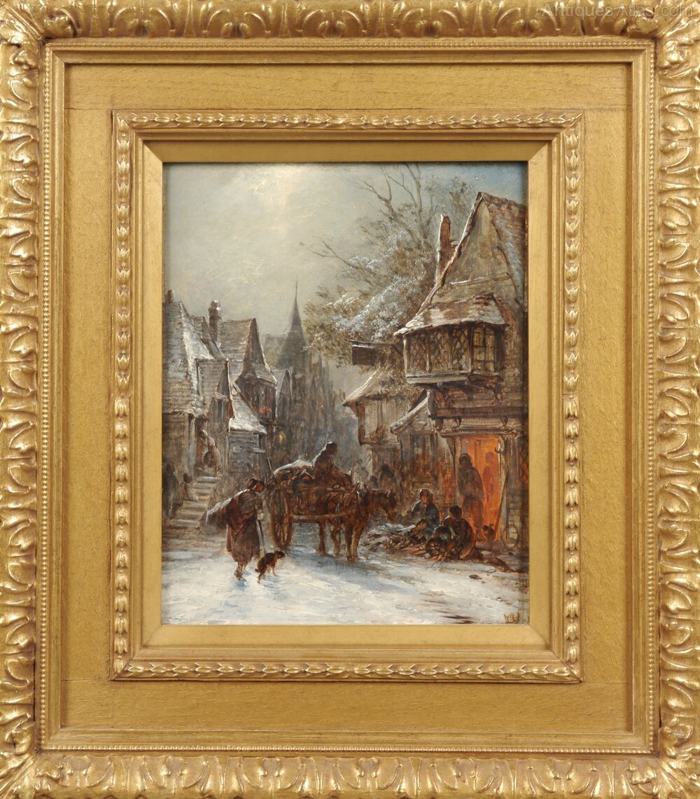 George almost certainly inherited a talent from his background, but his work also contains distinguishing characteristics, which give it a very definite identity. He handled colour with great freedom, producing a variety of surface and delicate fluidity of tone, a golden harmony that owes something to J.M. Turner. Whether winter or summer scenes, these canvases are overlaid with a subtle transparency of yellow glazing, creating either warmth or cold, according to the value of the tones employed.