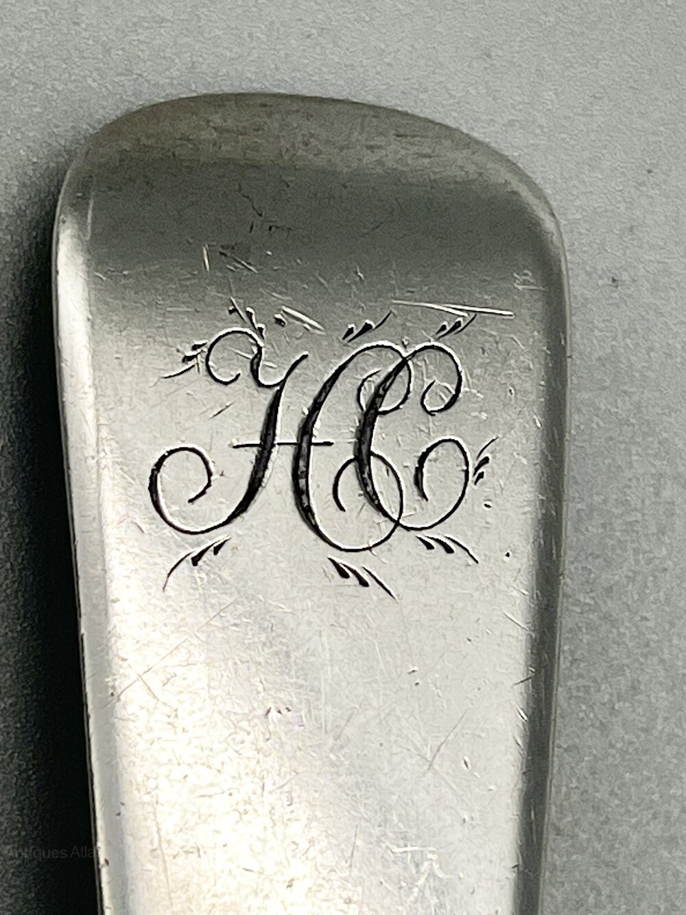 The table spoon was made by silversmith William Hope and assayed in Exeter in 1825. William Hope was based in Plymouth Dock in Devon. He was a specialist spoon maker who was active between around 1816 and the early 1830s and sent his items to Exeter to be hallmarked as this was the assay office for the whole of South West England until its closure in 1883.