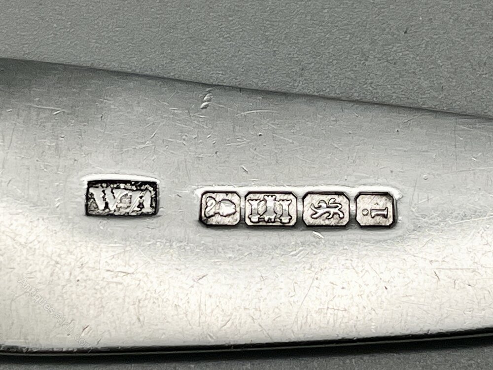 The hallmarks, on the underside of the stem, are crisp and clear to read. They show the lion passant for Sterling Silver, the three towered wall assay mark for Exeter, the date letter II for 1825. the George IV duty mark and the W H makers' mark for William Hope.