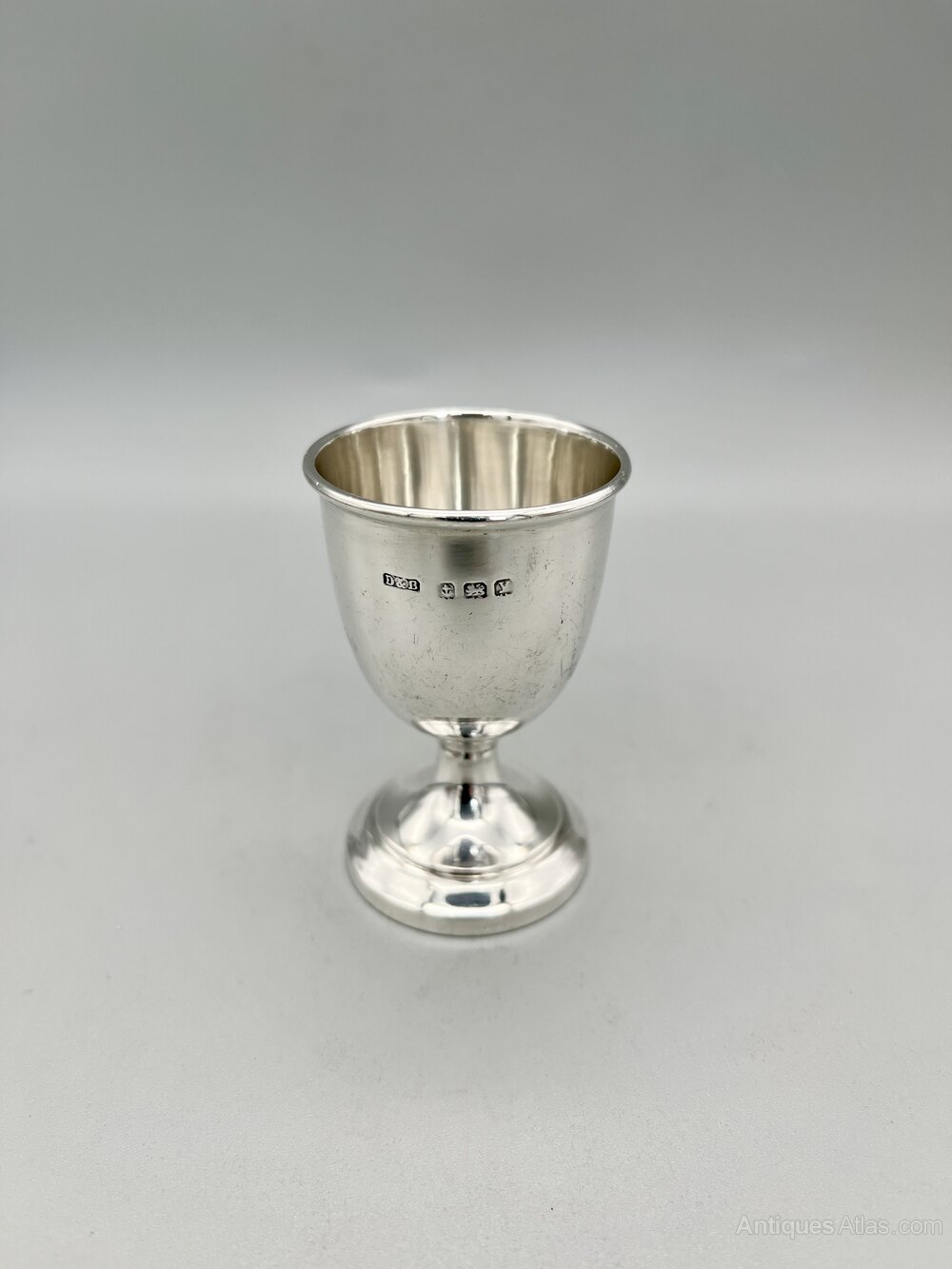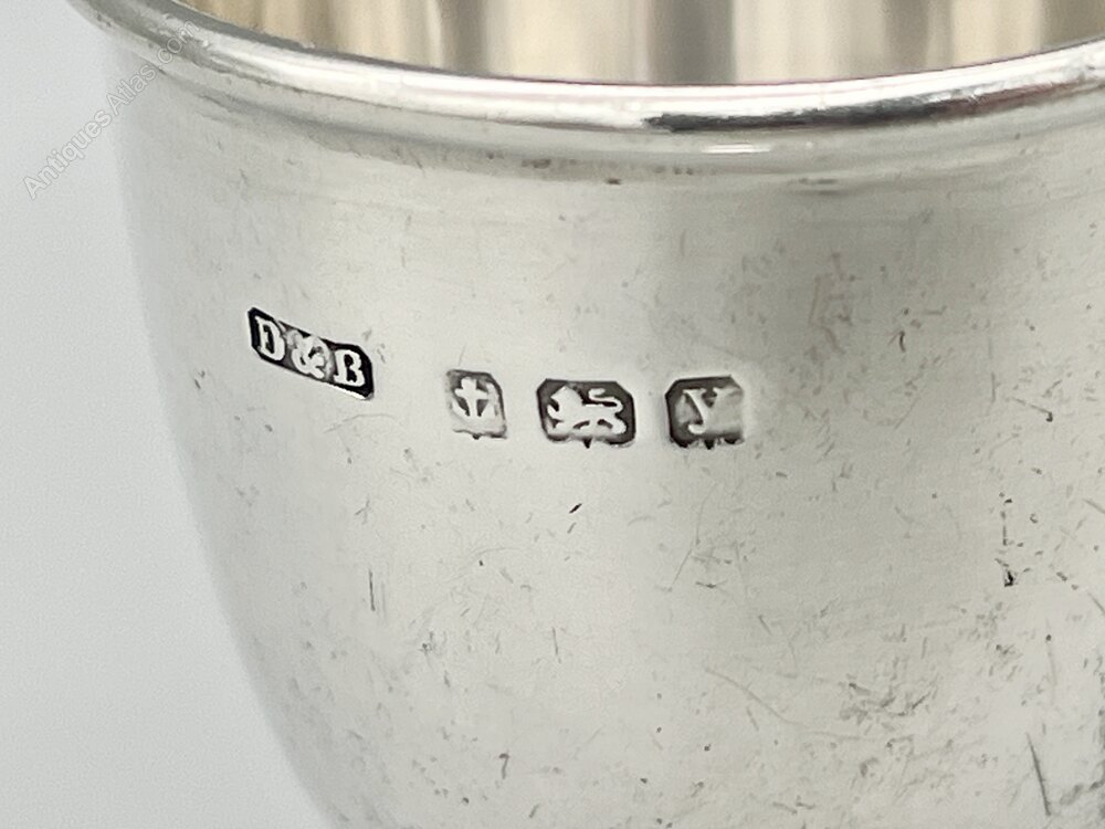 The egg cup was made in Birmingham by silversmiths Docker & Burn and dates to 1923. Docker & Burn registered their mark at the Birmingham assay office in 1920 and primarily produced silver tableware and flatware throughout the 1920s. They ceased trading around 1930, probably victims of the economic crash of the period.