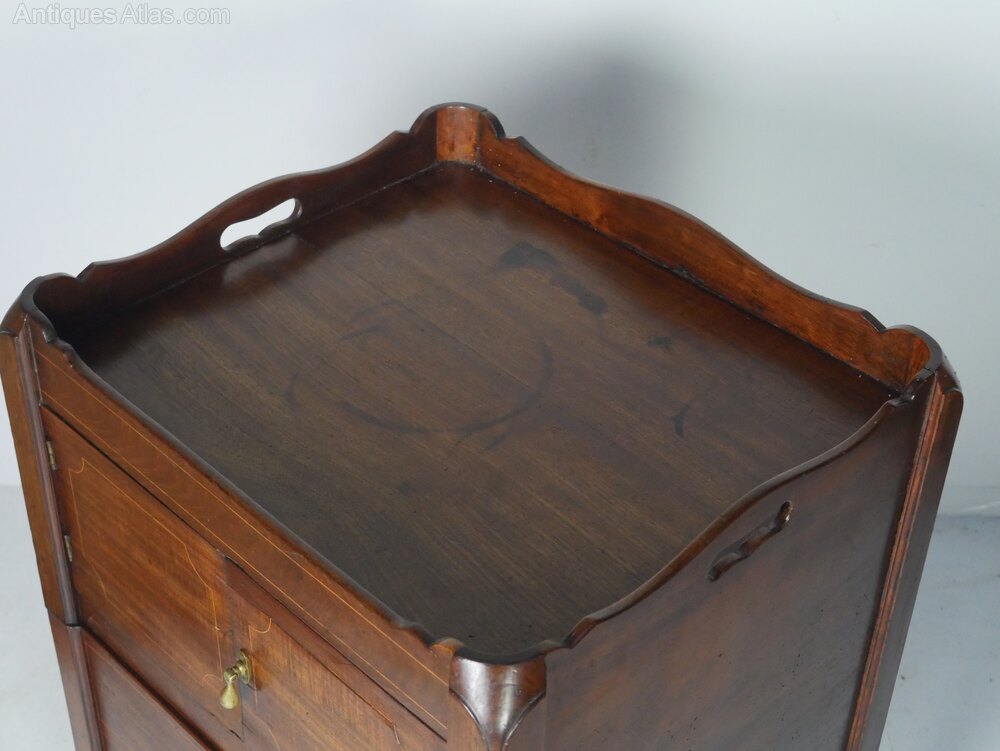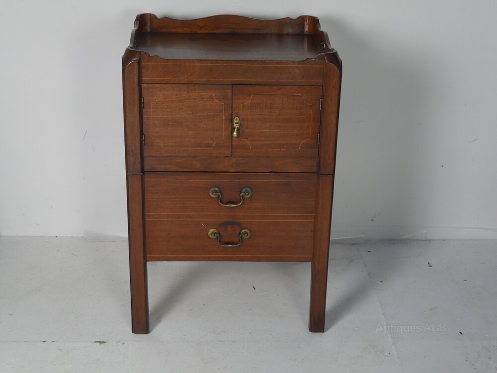A good quality late 18th century mahogany bedside cupboard with useful two door cupboard space, a single drawer beneath with a oak tray to the top of the drawer, lifting up to give drawer space beneath, all in solid stable condition with a tray top height of 67cm, all free running and ready for use.