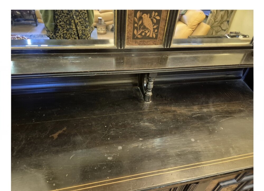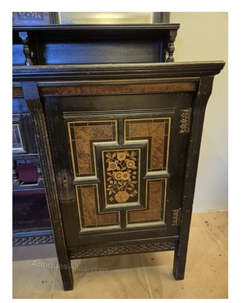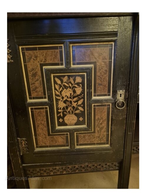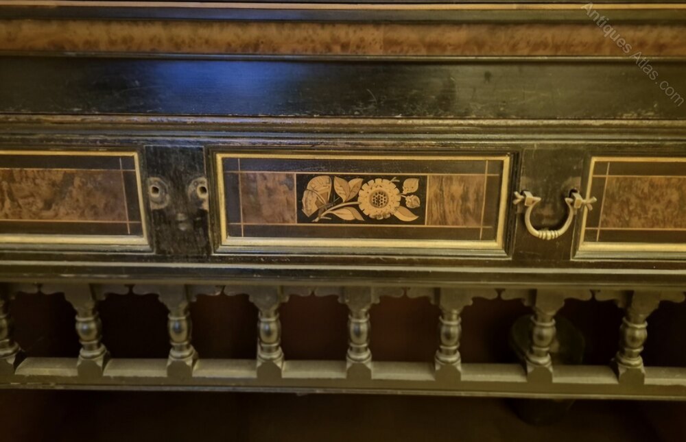 Antique Ebonised & Inlay Floral Marquetry Credenza