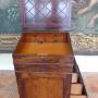 Pull out bottom left hand drawer handle to reveal inkwells and pen holder