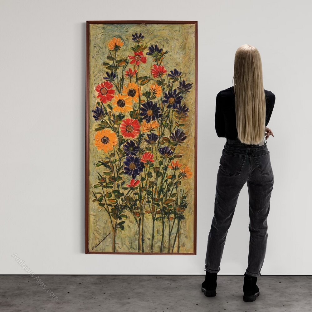 Signed lower left (see photo), signature under study. This vertical panel can easily be placed in various locations around the home, making it a great choice for antique dealers and interior decorators. A fabulous piece of art and in good condition. Internal dimensions: H 180 x W 84 cm. As each of our products will be accompanied by a certificate of authenticity and warranty and photographic documentation. Every item will be packed in a custom-made wooden box. Free shipping in Europe and UK (import and custom duties NOT included). Worldwide shipping at affordable prices, ask us a shipping quote. BUY IN INSTALLMENTS INTEREST FREE.