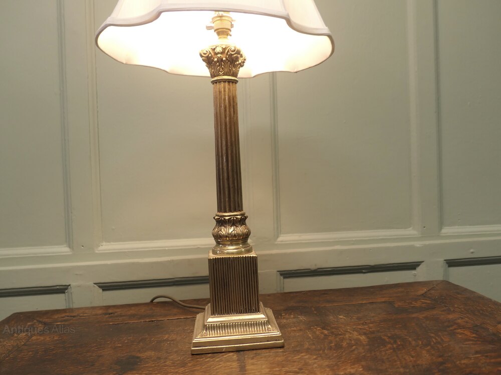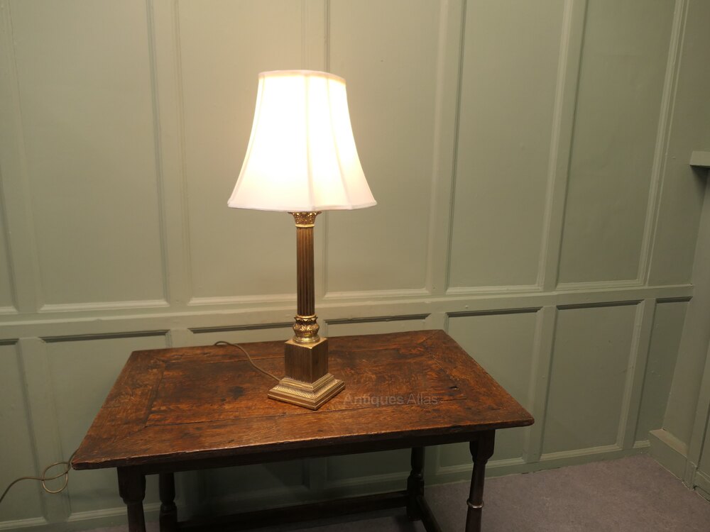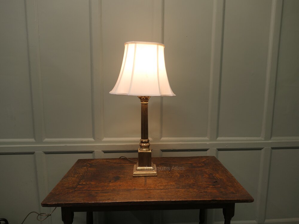 This is a very attractive piece, the lamp has a single fluted column set on a very attractive fluted stepped base