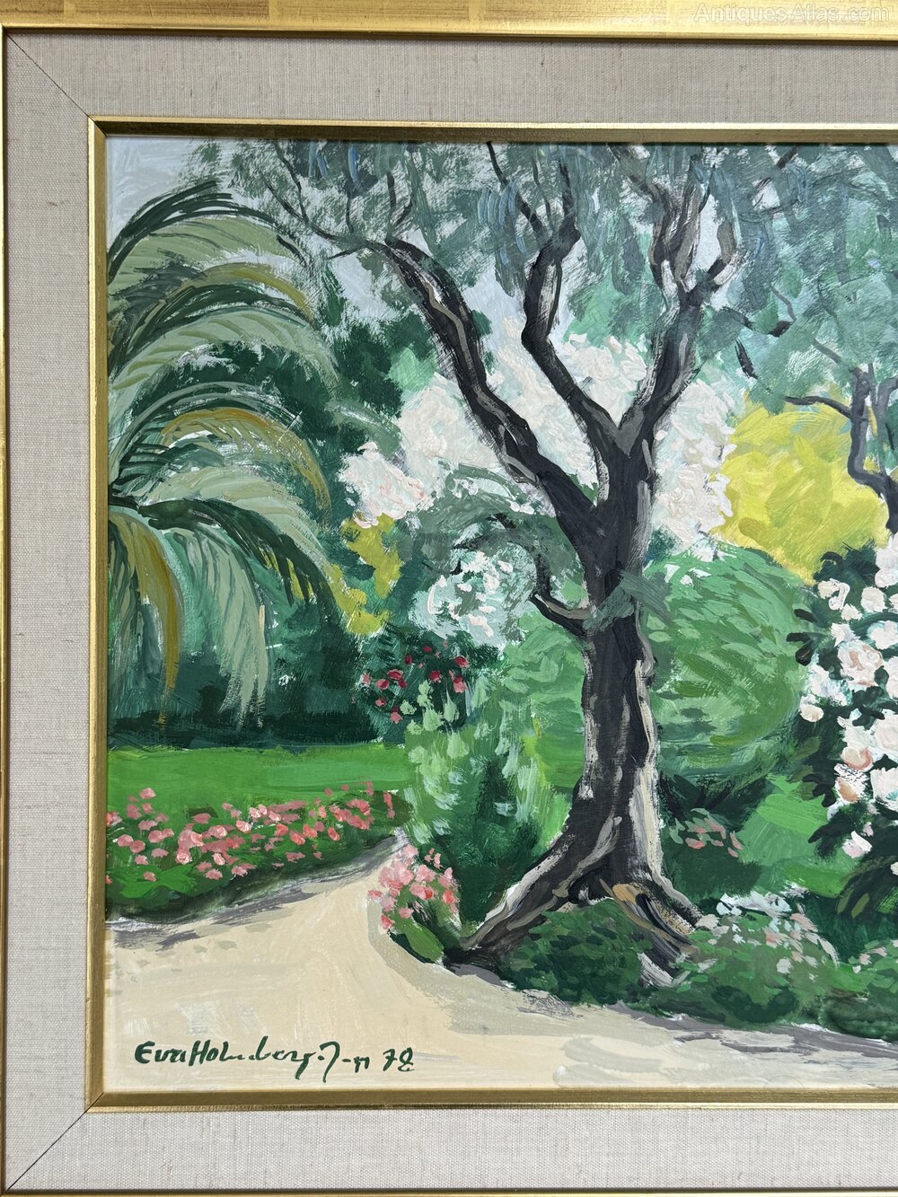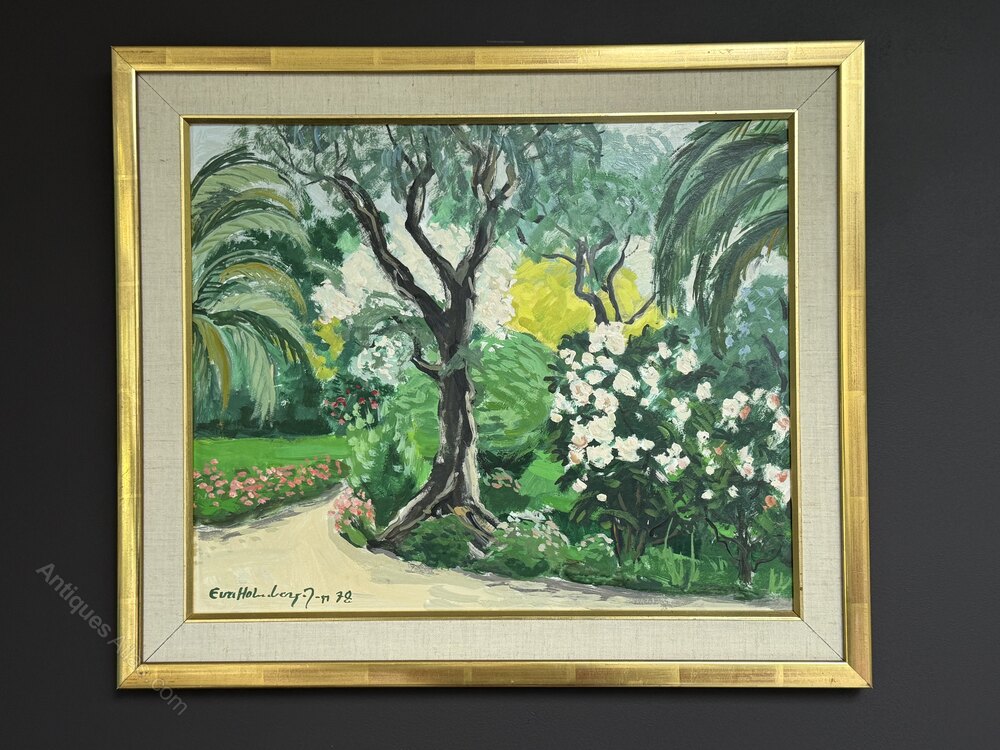Stunning impressionist oil painting 'Country Garden' on board by well-known Swedish artist Eva Holmberg-Jacobsson (1910-2003). Signed by the artist and dated 1978.