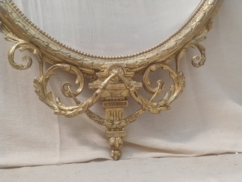 Large Antique Gilt Oval Wall Mirror c1880