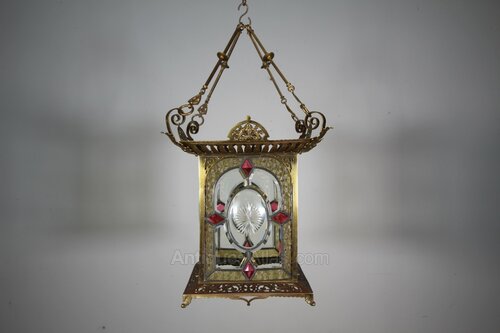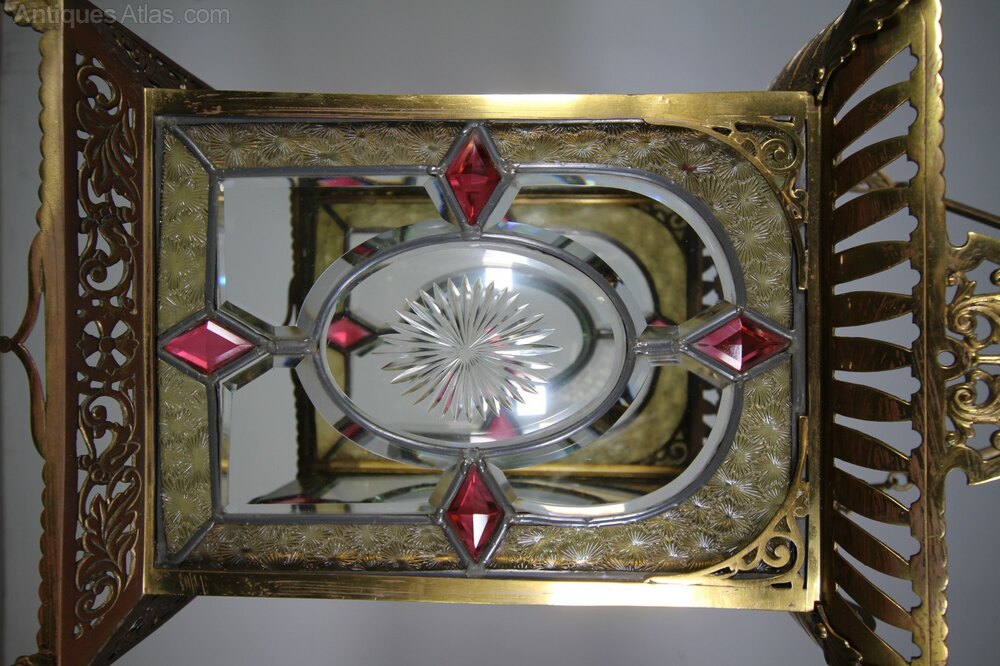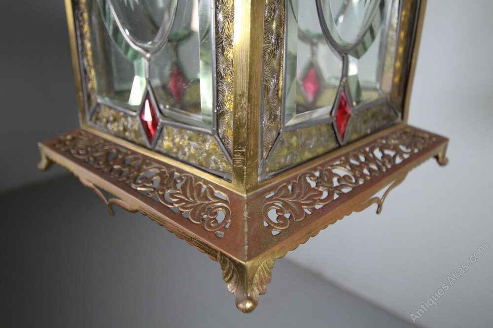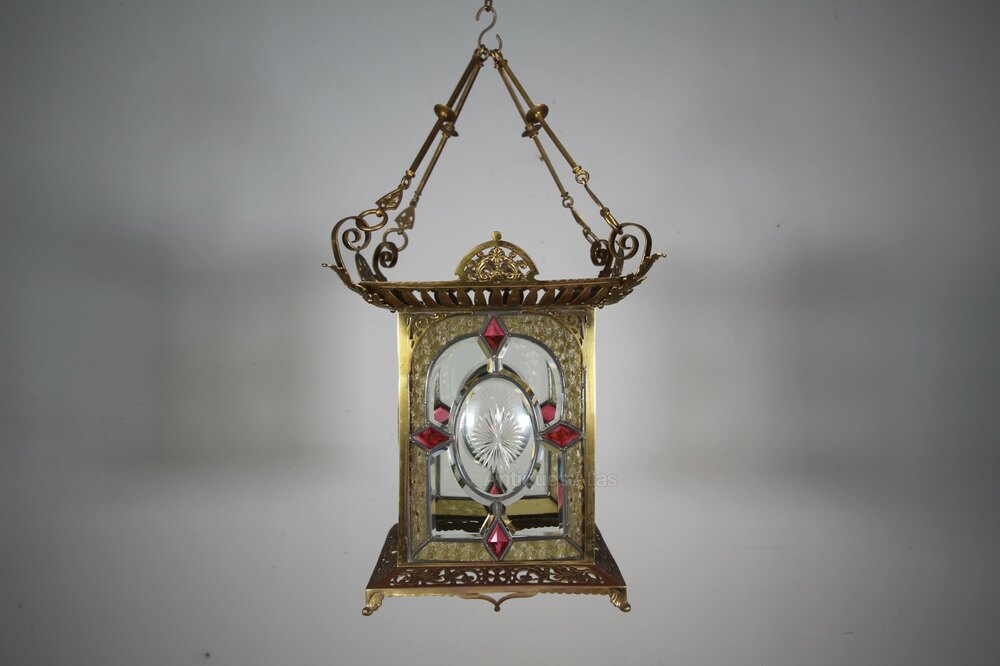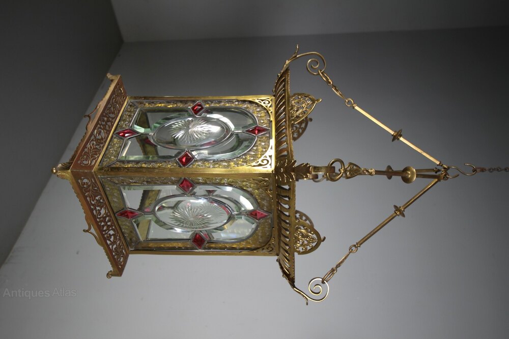 Large English 19th Century Antique Cast Brass & Glass Lantern