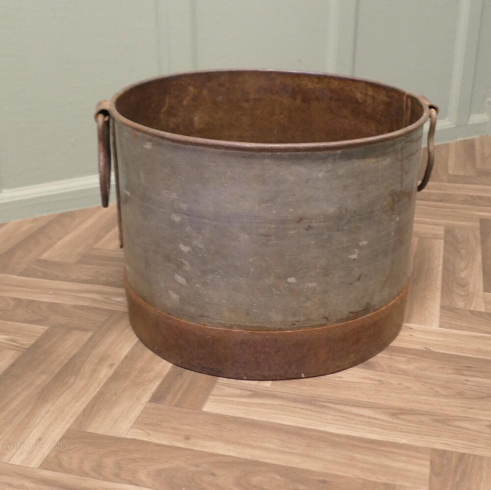 Large Galvanised Steel and Iron Cauldron Log Bin
