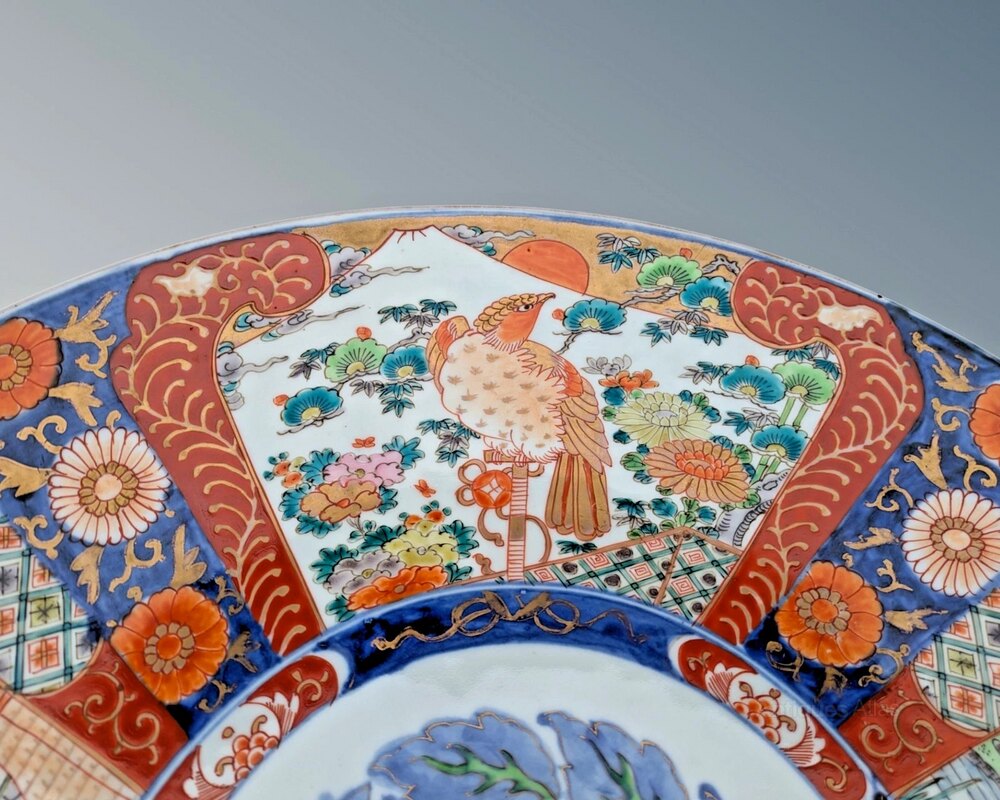 These are decorated in the Imari style with Japanese floral images garden scenes and large birds of prey.