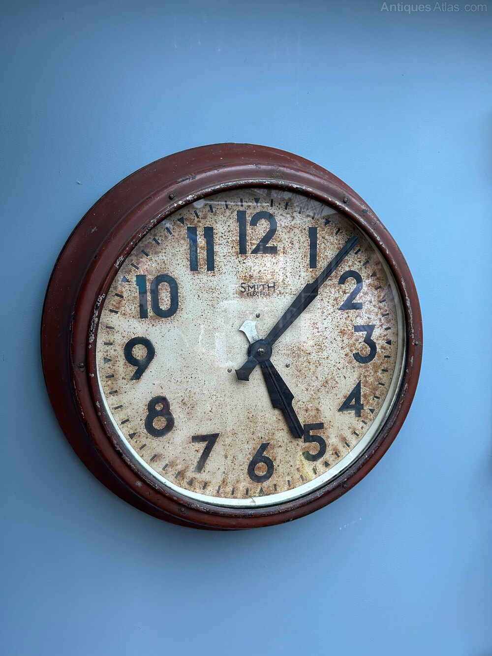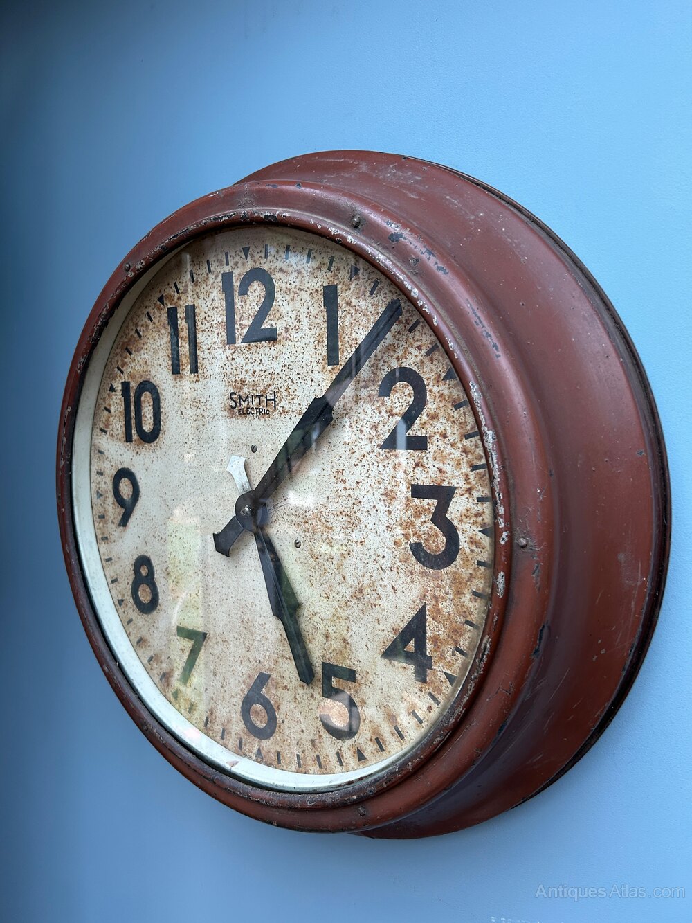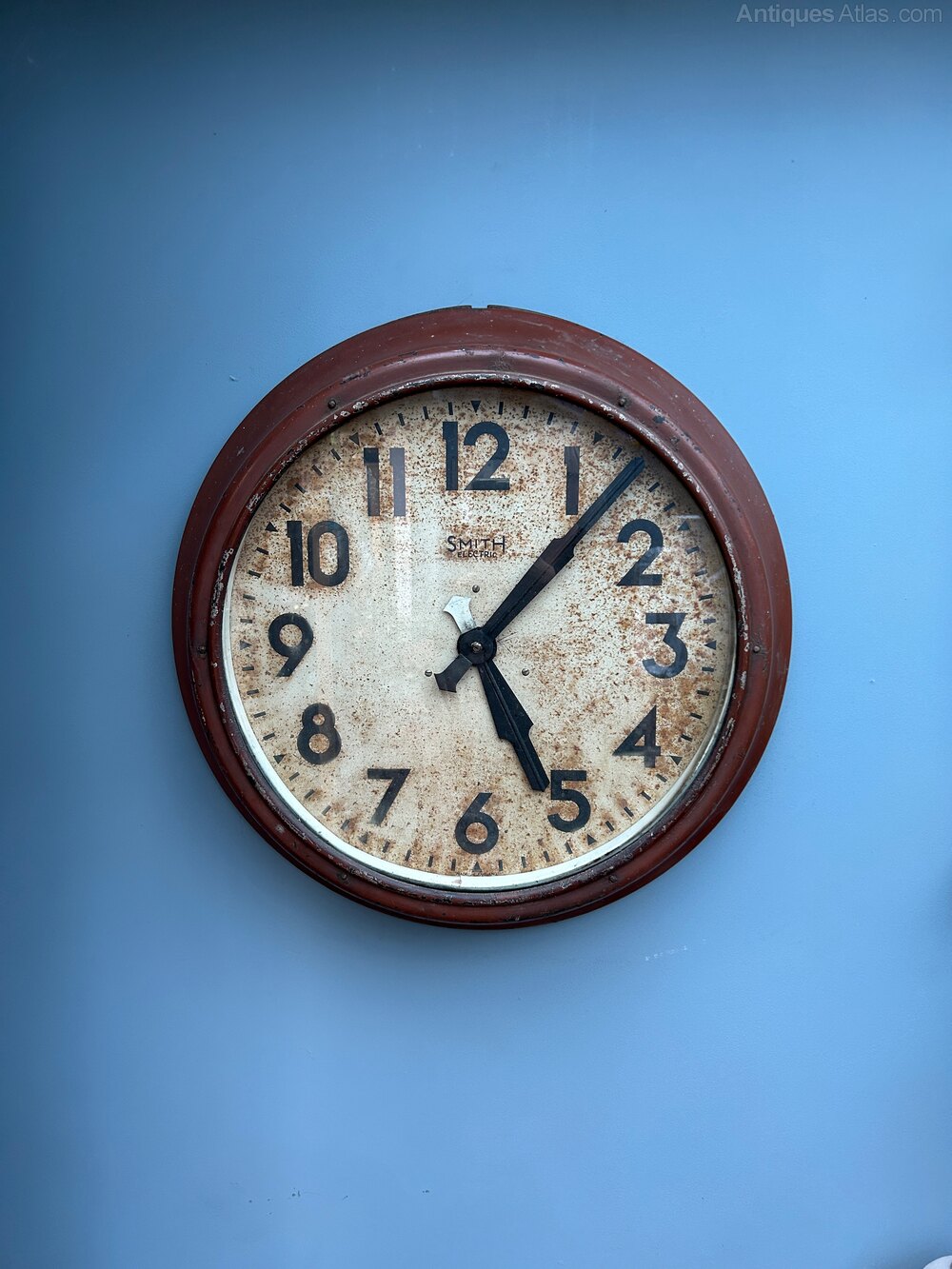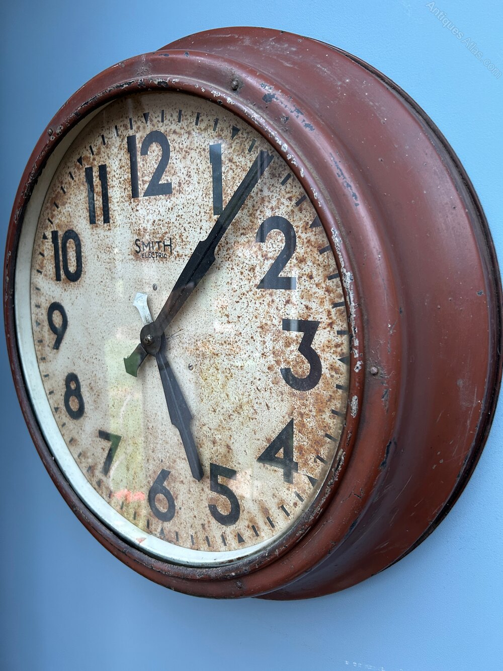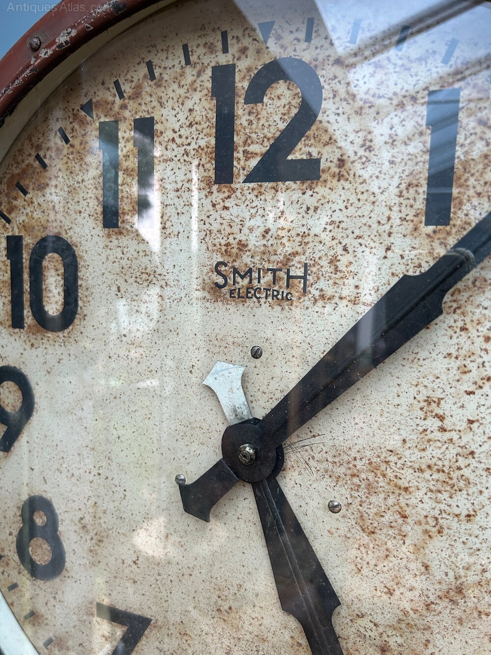 Super large 1930's Smiths Metal Factory Clock which has been converted to a quartz movement for ease of use. Original face and original case and hands.