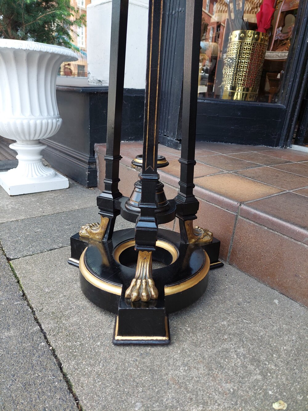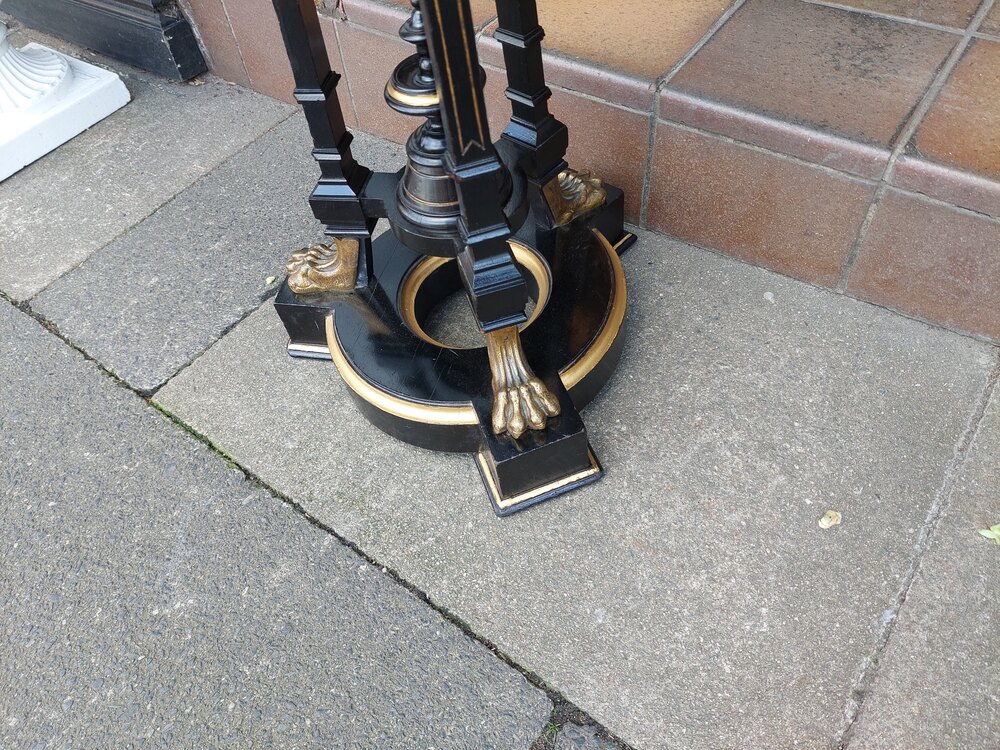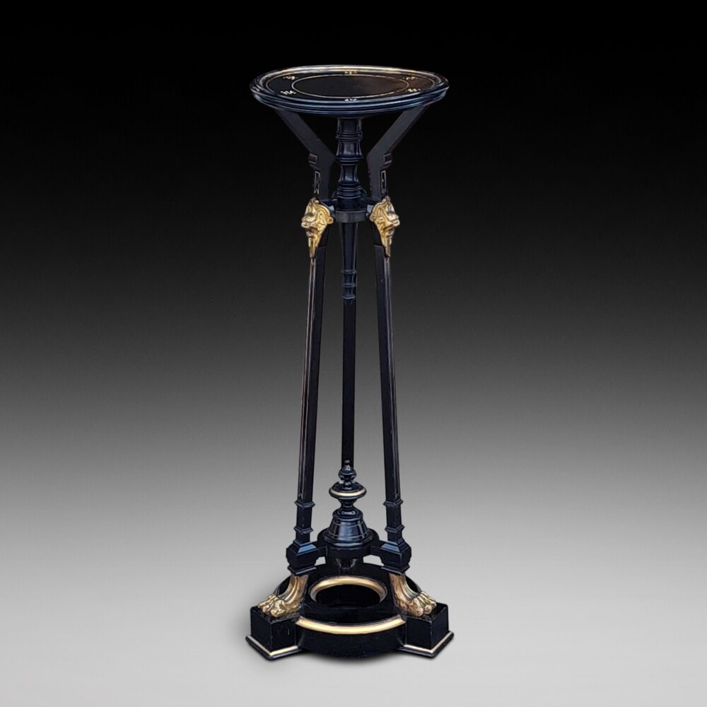 Late19thC Ebonised & Ormolu Mounted Jardiniere Stand - of tapered Aesthetic form with lion paw feet and circular top - 15" diam (13" at the top) x 37.5"h