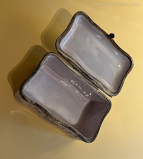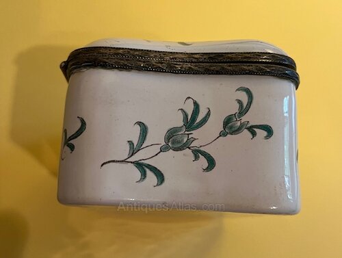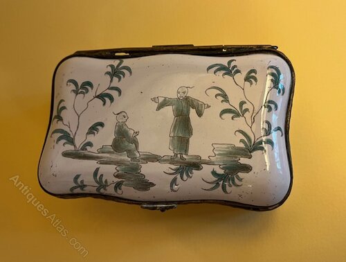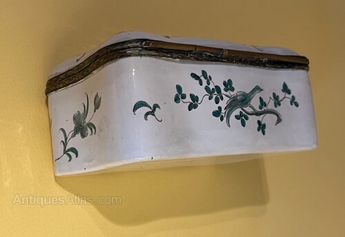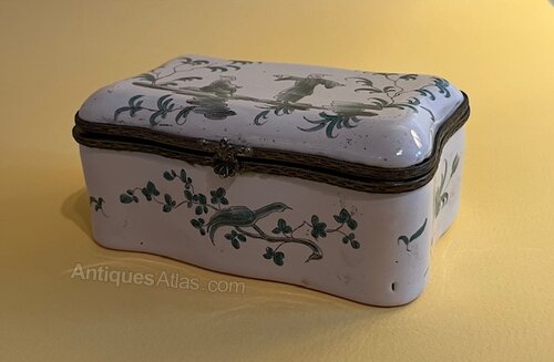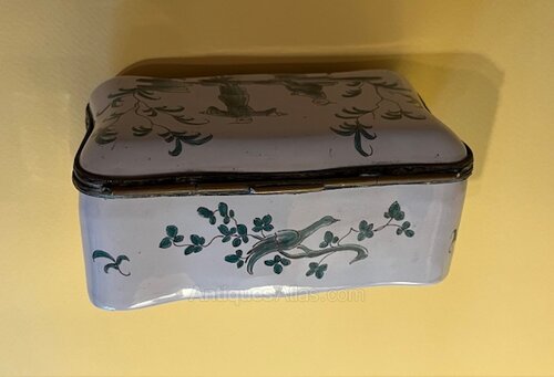 Late 18th c. French faience box with chinoiserie decoration.