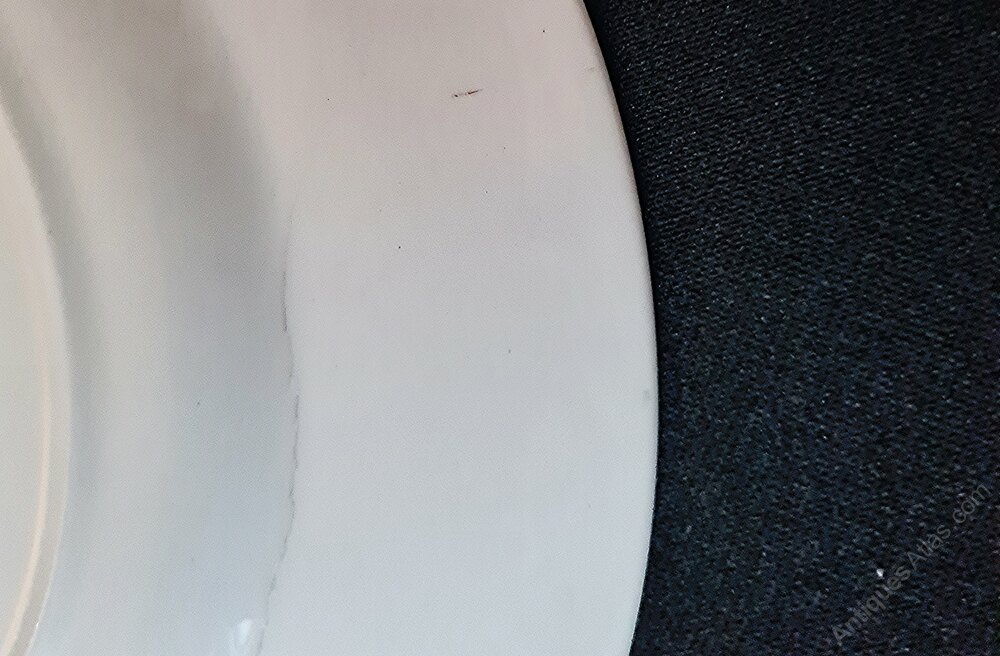 A stunning and rare Circus plate designed by Laura Knight for the 1934 Harrods and 1935 Art in Industry exhibitions. The front image is in excellent condition with no chips, cracks, crazing, paint loss or restoration guaranteed. On the back of the plate on the crease of the well there is a very thin 7cm firing split/scratch from the kiln which does not extend to the front. Difficult to photograph as barely noticable, but please look closely at the photos as they form part of the description. The price reflects this fault although the front is absolutely perfect. The plate has a nice ring when tapped. Full marked to the base with signature. 23cm (9") dia