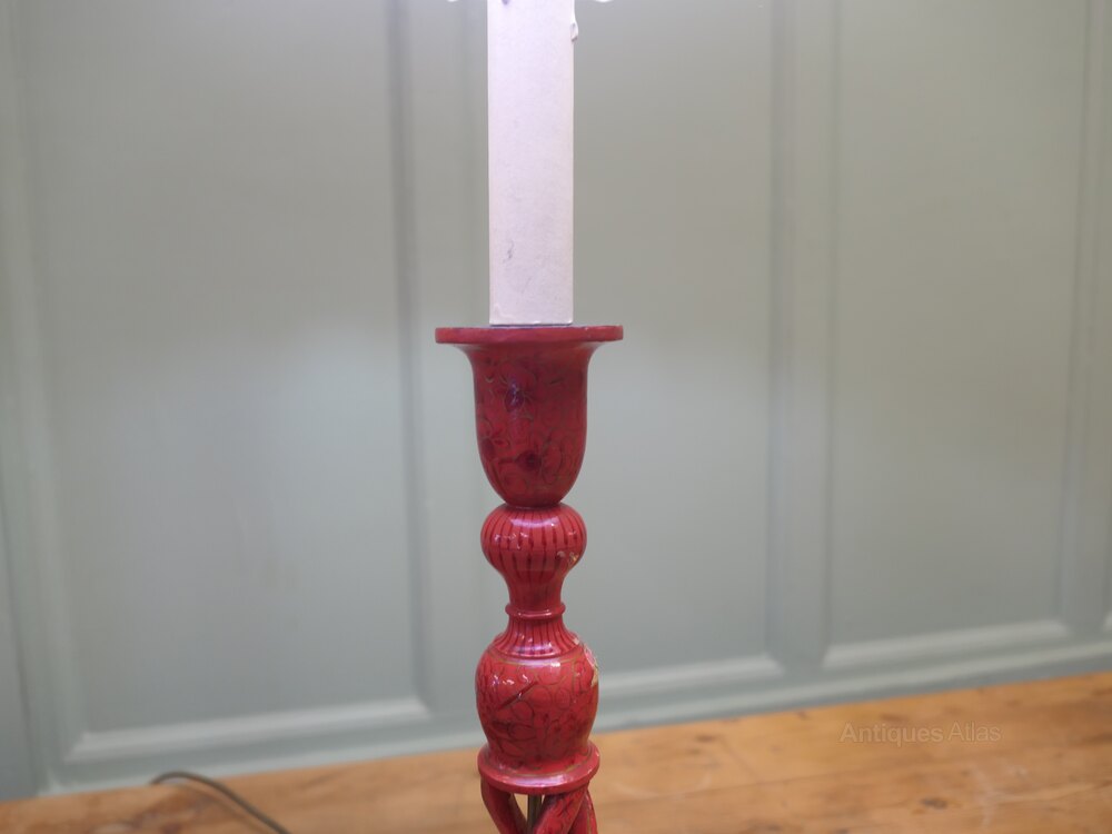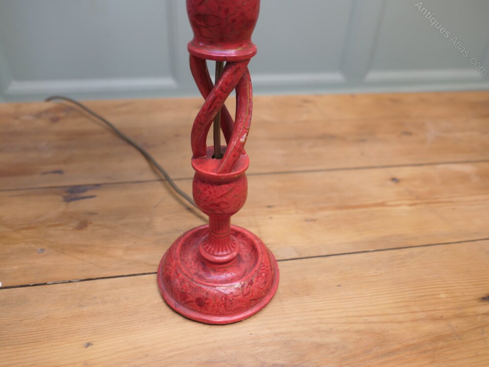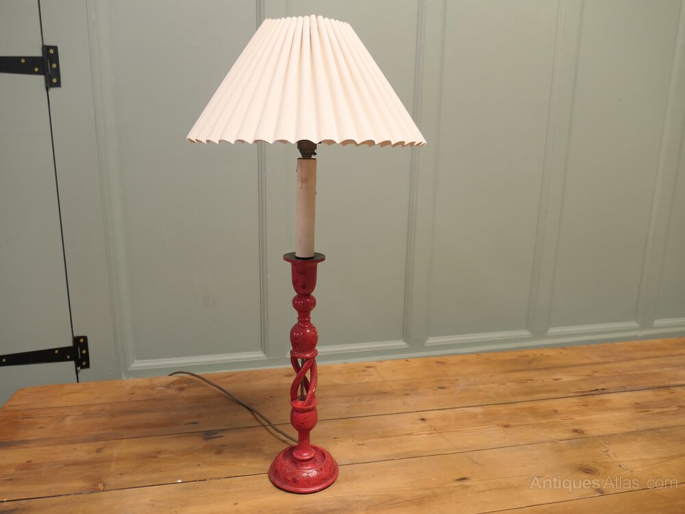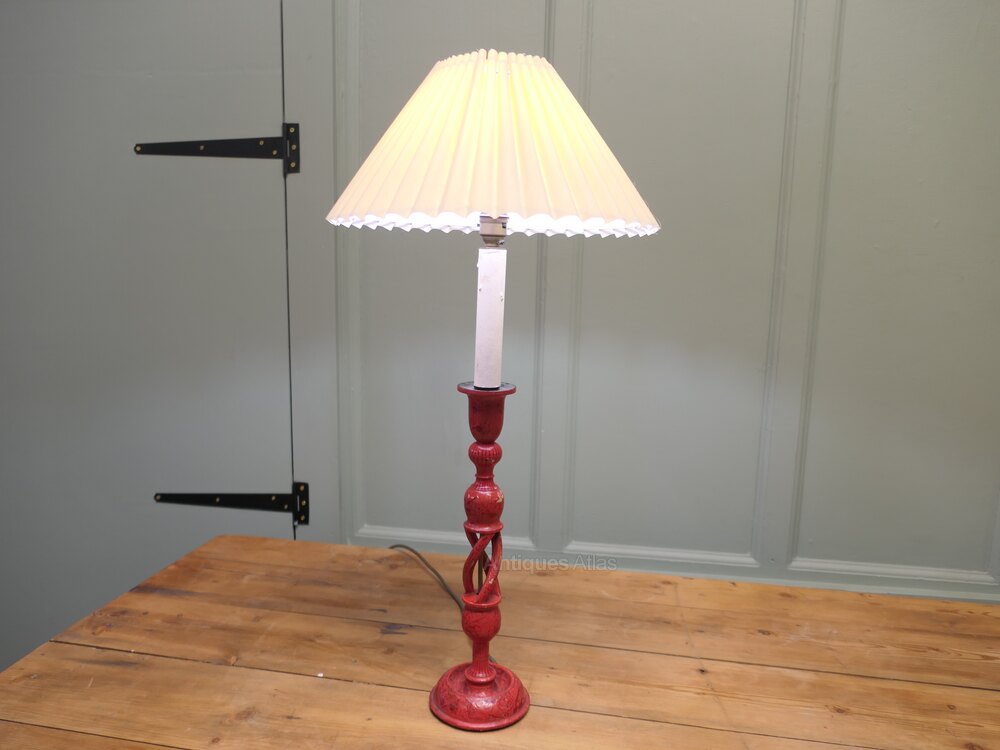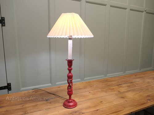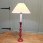 A skilfully turned piece, this lamp stands on a turned wooden base, the upright column is hollow at one point showing the skill of the carver it is in good condition, the wiring is good, it comes with a coolie lamp shade