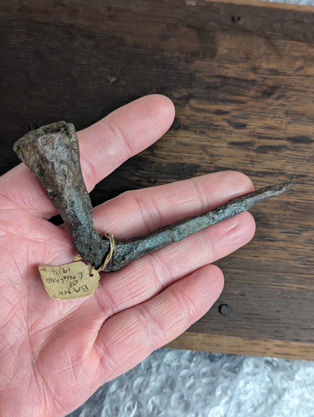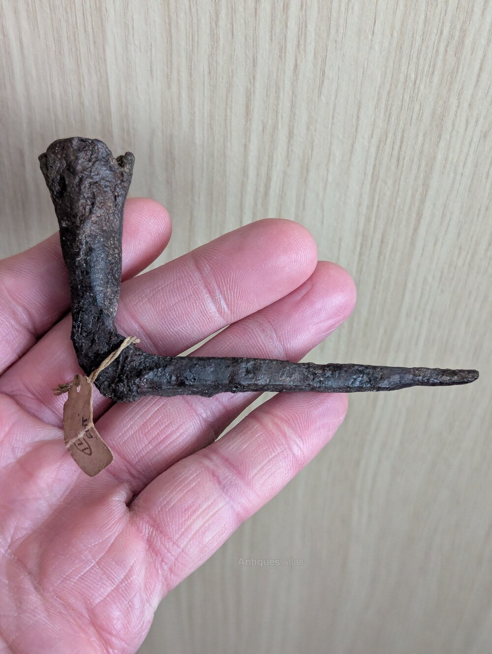 This type were knocked into a wood beam running down the wall for basic lighting. Found at the site of the Bank of England in London during works in 1934.