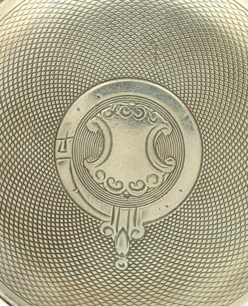 CASE: The watch lies in a silver case with an engine turned finish with a monogram free cartouche. The inner side of the case is hallmarked for Silver London 1928 and numbered: 858106. The cuvette is decoratively signed: “E.I.A.S., 1 Mile, Ivison S. Macadam, 1910”.