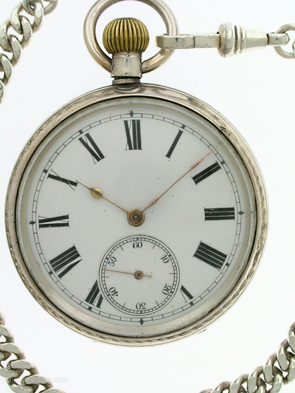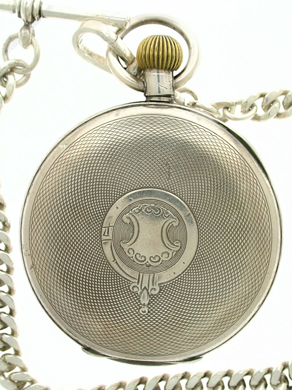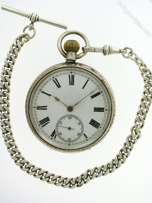 Antique Silver Pocket Watch Chain And Fob