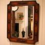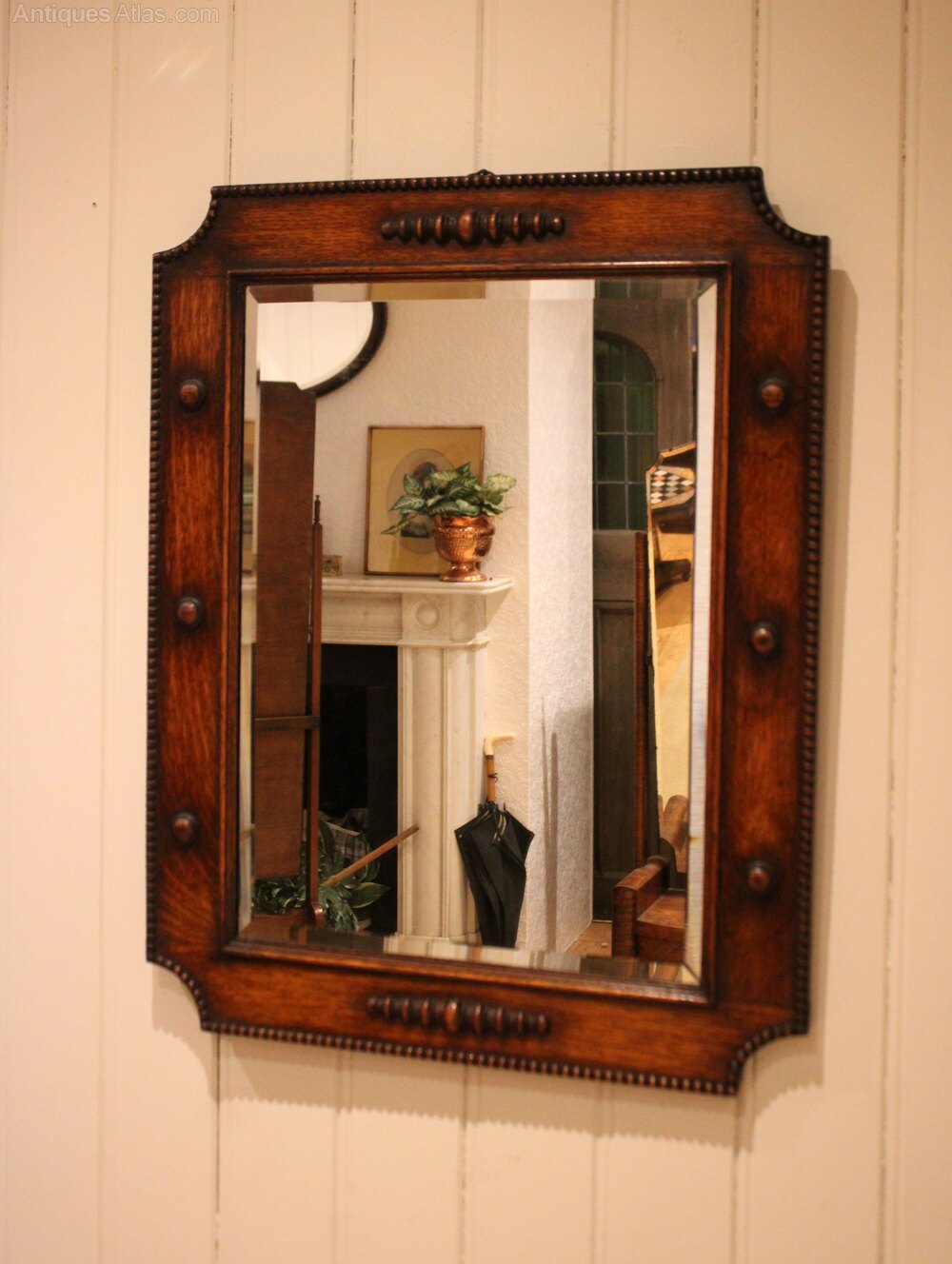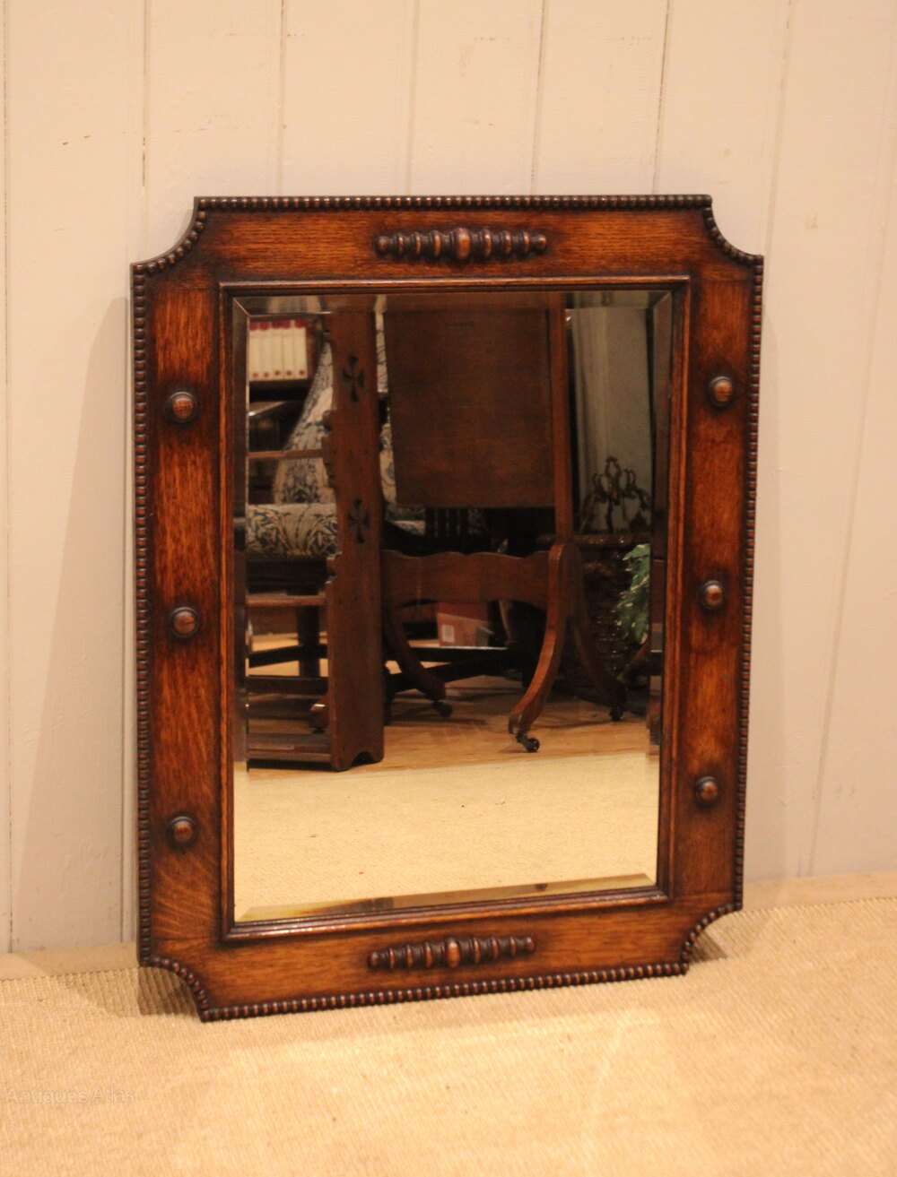 Oak rectangular wall mirror having canted corners , applied carving , with an inset bevel edge mirror , can be hung landscape or portrait .